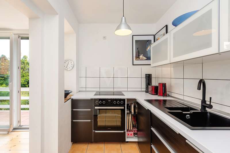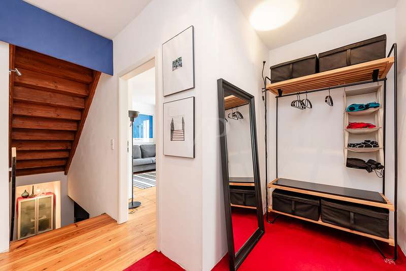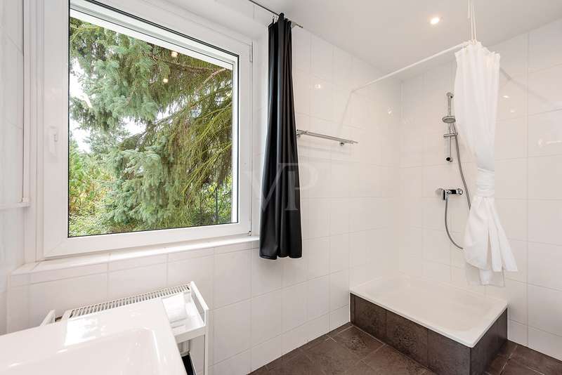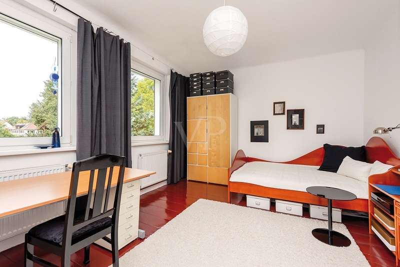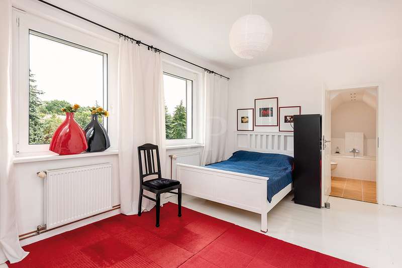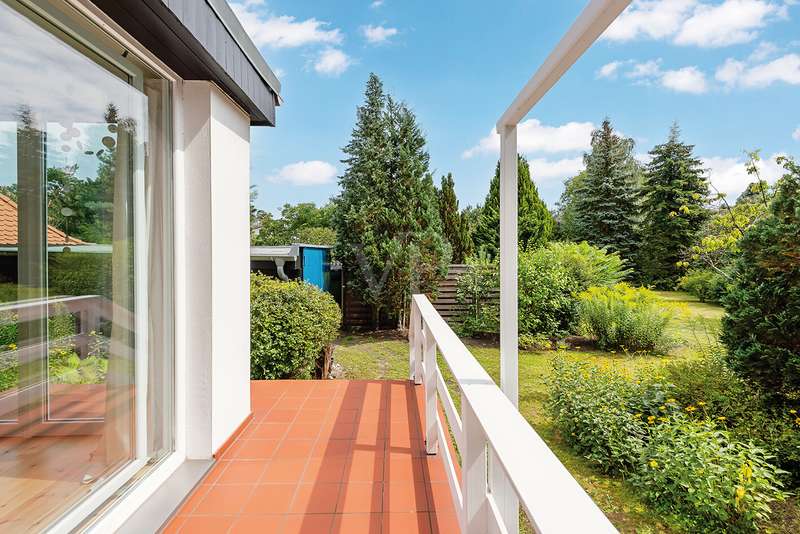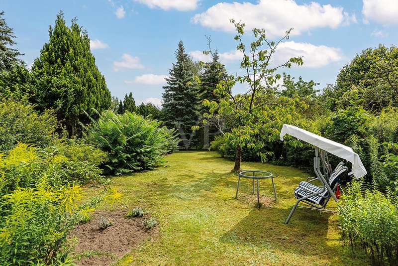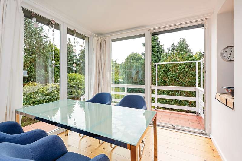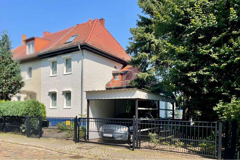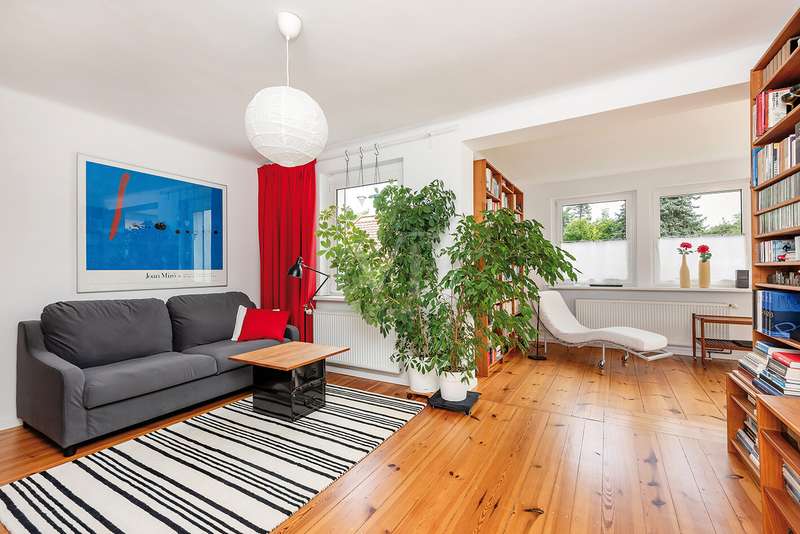 This stylish ensemble was built around 1921 in a durable, solid construction. The terraced end house on offer here is located at the front of the property and is a real eye-catcher. The floor plan of the rooms was generously planned and designed on a living space of approx. 128 m². As soon as you enter the house via a covered entrance into the spacious hallway, the room layout concept presents itself in clear and generous structures. A radiant interplay of bright colors and lovingly preserved stylistic elements gives each room an unmistakable aura. This is particularly impressive in the homely heart of the house: the inviting living area, which flows seamlessly into the light-flooded conservatory. Here, indoor and outdoor areas merge into a place full of lightness and security. The south-facing terrace in front invites you to experience the peace and space of the large garden to the full and enjoy precious moments in the greenery. The modern and functional fitted kitchen blends harmoniously with the dining area, allowing for short distances in everyday life. A further large room and a comfortable daylight shower room round off the space on the first floor. A stylish staircase in a beautiful stairwell leads to the upper floor, where two light-flooded rooms and a bathroom en suite with bathtub and natural light provide a special living experience. A small room has already been converted on the top floor above, while the remaining, currently uninsulated area offers versatile conversion potential - a further 20 m² of living space would be available here after a conversion. Additional storage space is provided by the partial basement, which houses all the house connections as well as the modern gas condensing boiler from 2008, which supplies the building efficiently and reliably with heat and hot water. On an idyllically landscaped plot of approx. 704 m², historical charm is combined with lovingly tended nature - a place where you arrive and immediately feel at home. Old trees, sunny open spaces and lovingly landscaped borders give the property a cozy ambience with a special charm. The rear area of the property in particular was designed with a great sense of harmony. Here, fruit trees - including cherry, plum and apple - invite you to harvest and enjoy. A spacious, daylit garden shed offers additional space for a wide variety of uses. A special feature of this property is the valuable building land reserve with direct access from the street. It opens up a wide range of possibilities - from extending the existing home to creating additional space for living, working or entertaining. The idyllic garden and the wide open view from the existing building would not be affected by any construction work. This potential makes the property not only attractive for current needs, but also a future-proof investment. This property is far more than just a house - it is a home with heart and space for family and friends and a garden that provides space for relaxation and unforgettable moments outdoors.