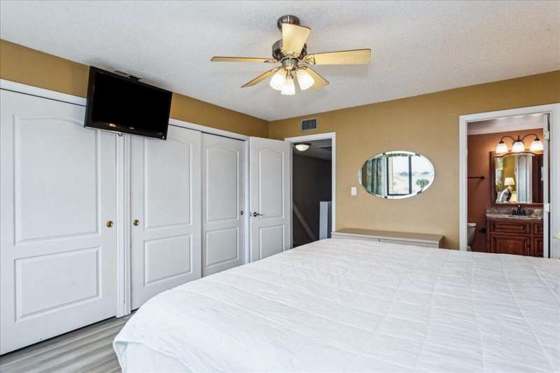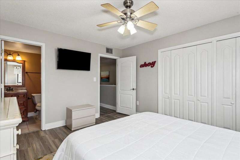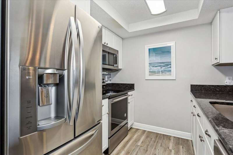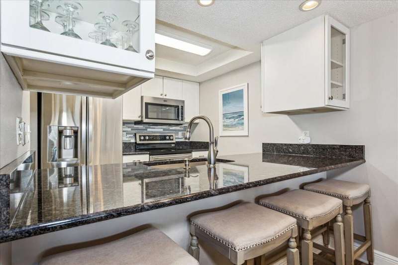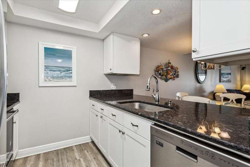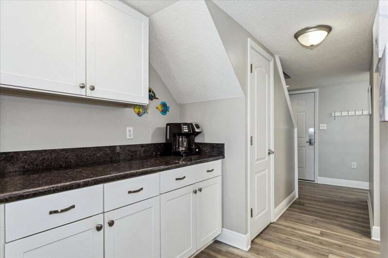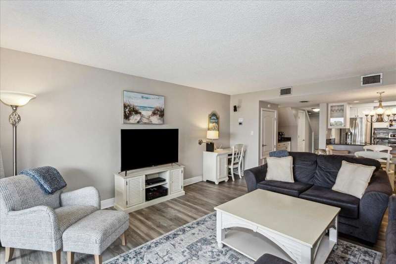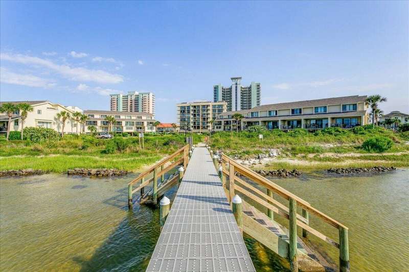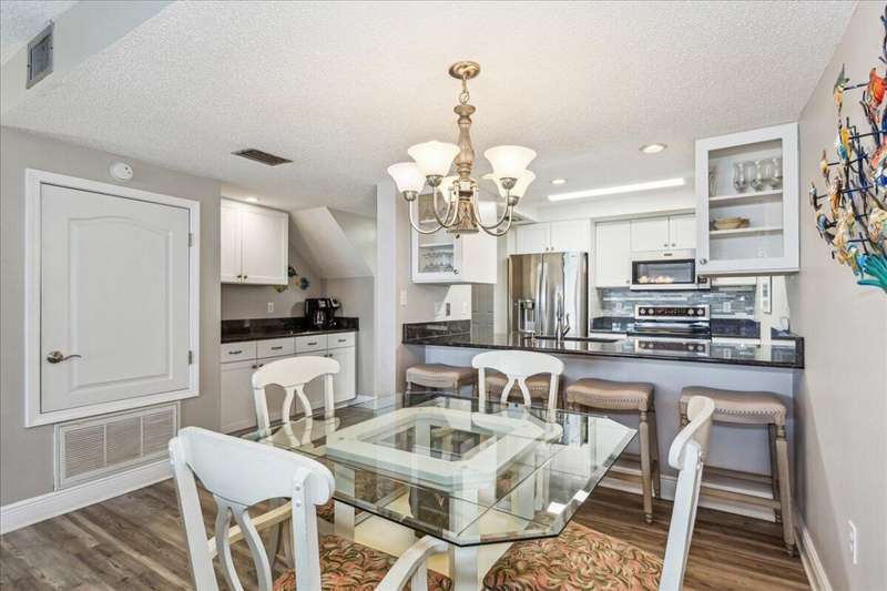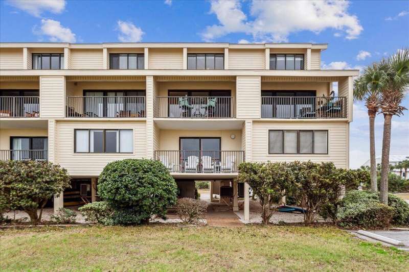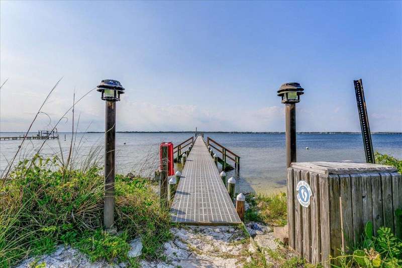 Step into coastal bliss with this stylishly updated 2-bedroom, 2.5 bathroom condo, featuring LVP flooring, neutral color palette, and updated kitchen and bathrooms - making it a turnkey investment or move-in ready primary/vacation home. Designed for comfort and modern convenience, the main level is a bright and airy open concept living and dining area, that leads to a spacious balcony where you can unwind with breathtaking Sant Rosa Sound views. The galley-style kitchen is attractively updated and functional, showcasing white cabinetry, granite countertops, stainless appliances and a unique built-in coffee bar - smartly expanding kitchen storage and counter space. A half bath, convenient for guests, completes this level. Upstairs, the Primary Suite is a serene retreat, offering mesmerizing waterfront views, two closets, and ensuite bathroom with updated vanity and tiled walk-in shower with glass door. The second bedroom is generously sized with a large closet and its own updated ensuite bath. The upstairs laundry area adds ease and convenience. Santa Rosa Dunes is an amenity-filled Soundside community with a robust clubhouse including full kitchen and workout room, large swimming pool, tennis courts, private beach, and pier. Boats/trailers are permitted in designated parking areas. Plus, easy access to the white sandy beaches along the Gulf of Mexico, directly across the street. Santa Rosa Dunes has successfully completed the state-required Milestone Inspection and Reserve Study. Enjoy beach life - full-time or part-time - with this opportunity to own a little slice of paradise!