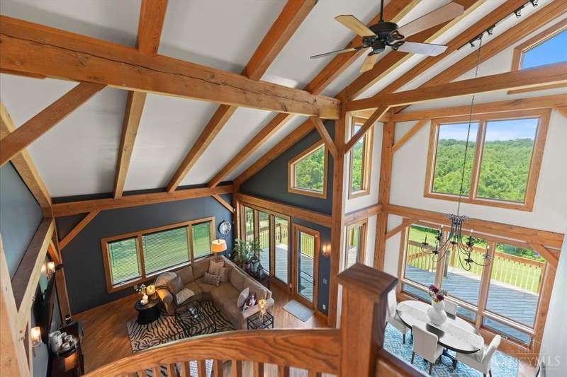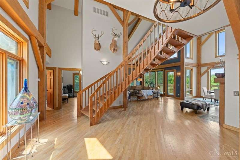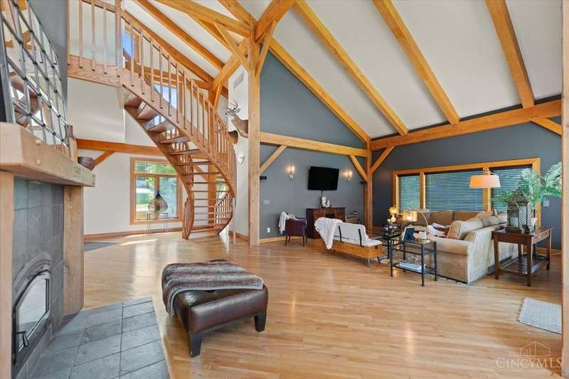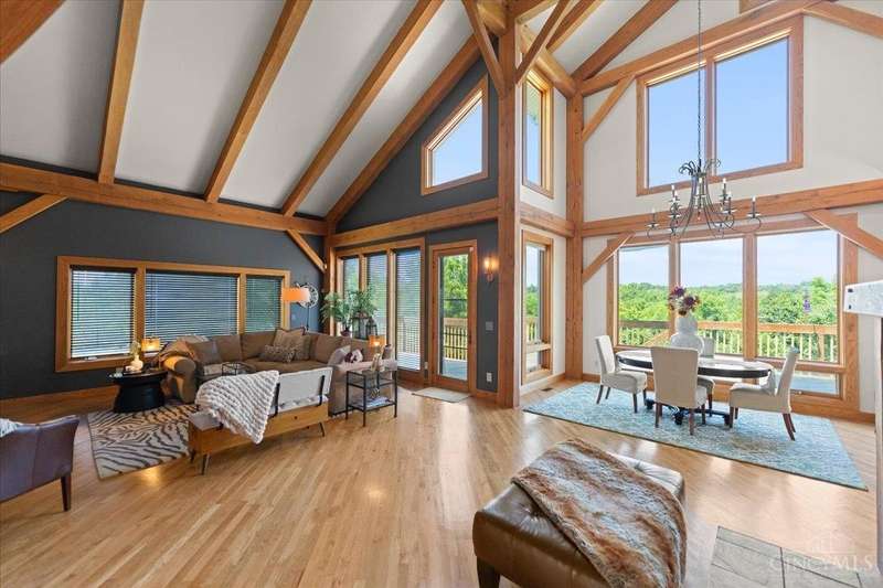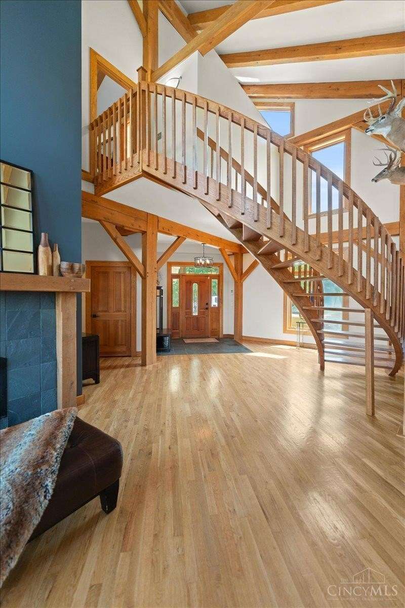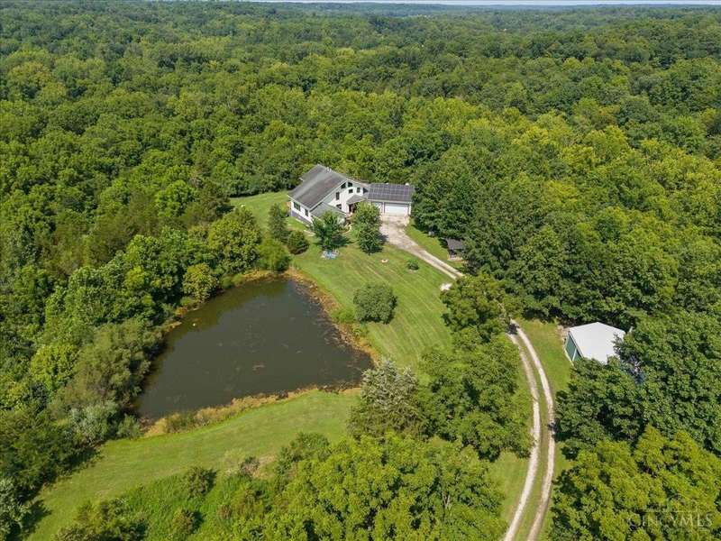 Privacy Abounds in this Spectacular Timber Frame Home on 22 Breathtaking Acres in Little Miami Schools! Absolutely Incredible Setting Sitting Atop Todds Fork River Valley w/Unbelievable Views & Sunsets. Stunning Home Features Massive Ceilings with Gorgeous Beams, Custom Floating Staircase & Expansive Natural Light, Roomy Kitchen w/Huge Pantry, Updated Laundry/Mudroom, Awesome Master Suite. Partially Finished Walkout Basement, Tons of Storage & Low Energy Bills w/Solar Panels, Oversized 3 Car Garage. Front Porch/Deck Overlooks Stocked Pond & Back Deck Showcases the Entire Property & River Valley, Not a Neighbor in Sight on Quiet Dead End Road. Wildlife Galore & Hunters Paradise, Tons of Trails Throughout, Secluded Meadow for Camping or Ideal Food Plot w/Year Round Stream. 24x40 Barn w/Electric. Additional Lot Included Allows Opportunity for Second Home to be Built if Desired. Experience Country Living in All Its Grandeur,An Absolute Must See Sure Not to Disappoint! Public Water @ Street