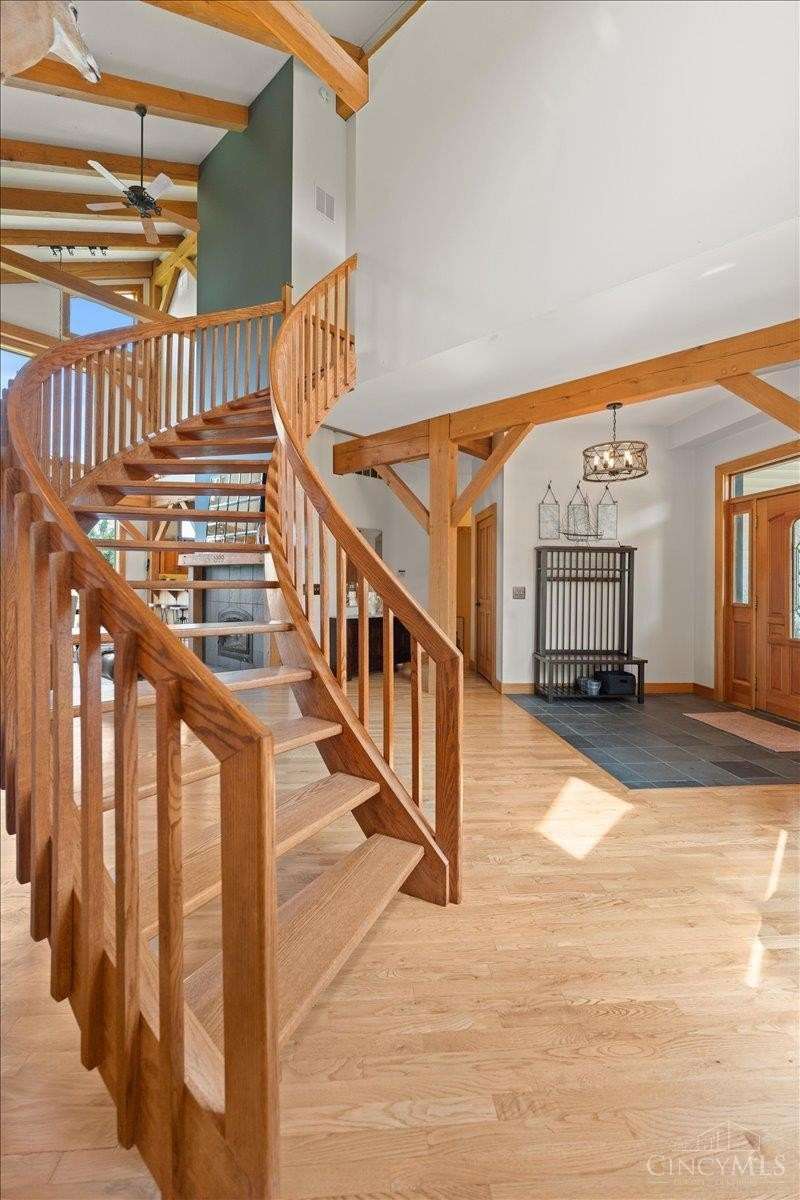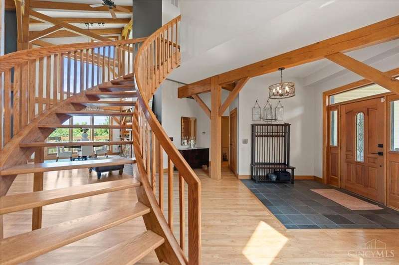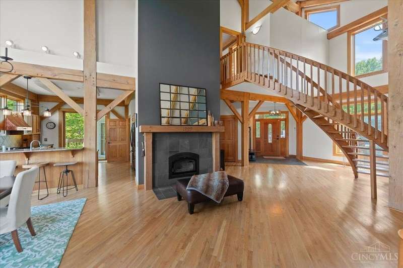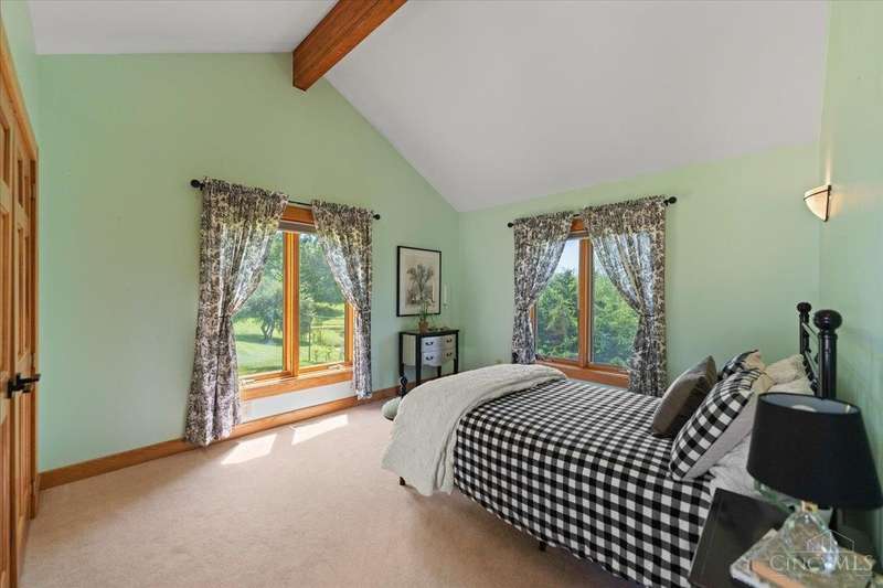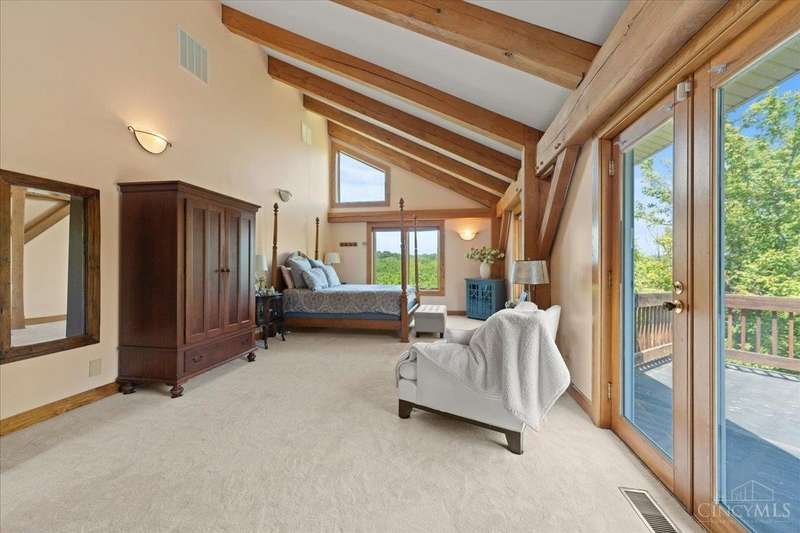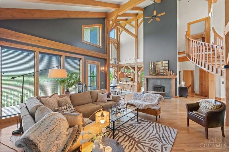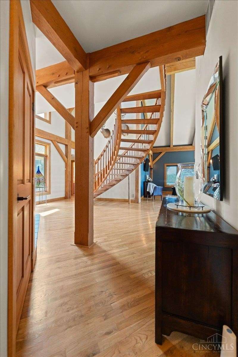 Privacy Abounds in this Spectacular Timber Frame Home on 22 Breathtaking Acres in Little Miami Schools! Absolutely Incredible Setting Sitting Atop Todds Fork River Valley w/Unbelievable Views & Sunsets. Stunning Home Features Massive Ceilings with Gorgeous Beams, Custom Floating Staircase & Expansive Natural Light, Roomy Kitchen w/Huge Pantry, Updated Laundry/Mudroom, Awesome Master Suite. Partially Finished Walkout Basement, Tons of Storage & Low Energy Bills w/Solar Panels, Oversized 3 Car Garage. Front Porch/Deck Overlooks Stocked Pond & Back Deck Showcases the Entire Property & River Valley, Not a Neighbor in Sight on Quiet Dead End Road. Wildlife Galore & Hunters Paradise, Tons of Trails Throughout, Secluded Meadow for Camping or Ideal Food Plot w/Year Round Stream. 24x40 Barn w/Electric. Additional Lot Included Allows Opportunity for Second Home to be Built if Desired. Experience Country Living in All Its Grandeur,An Absolute Must See Sure Not to Disappoint! Public Water @ Street