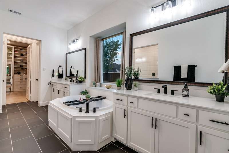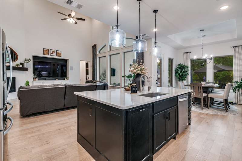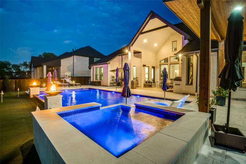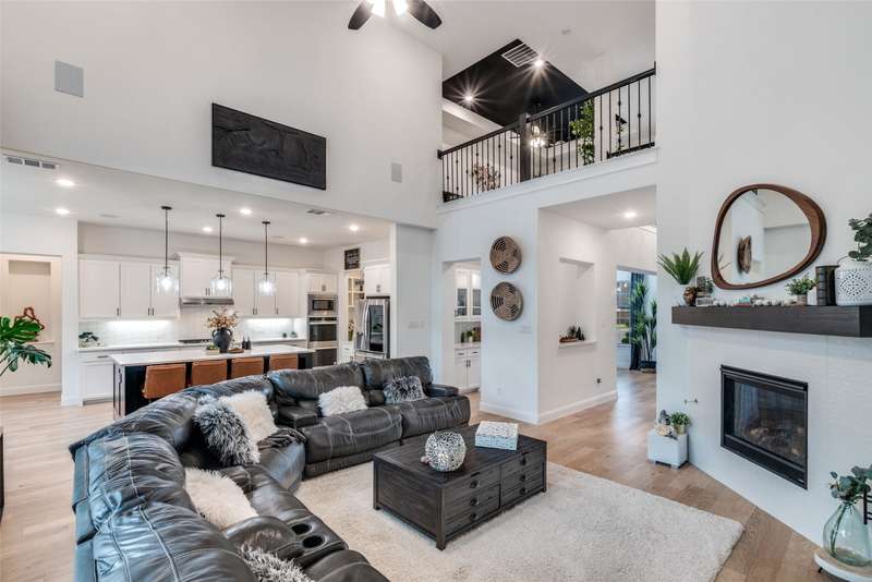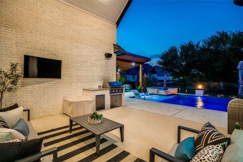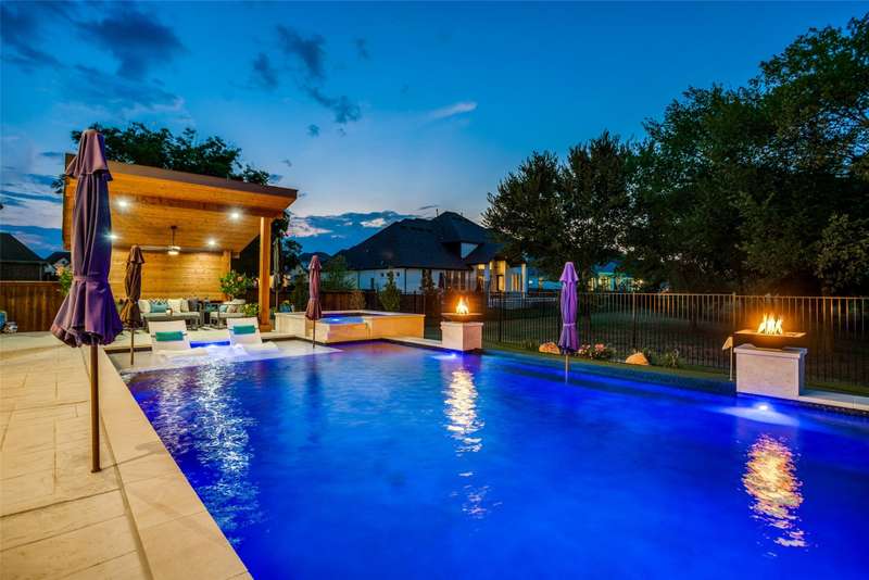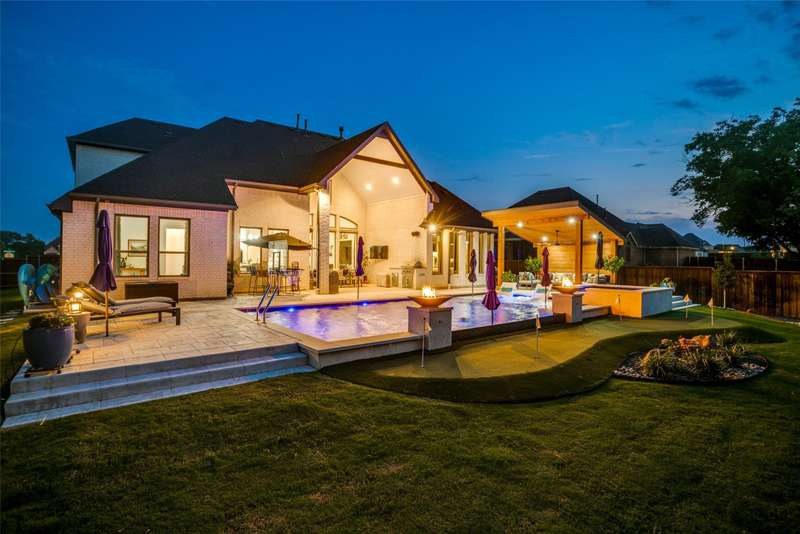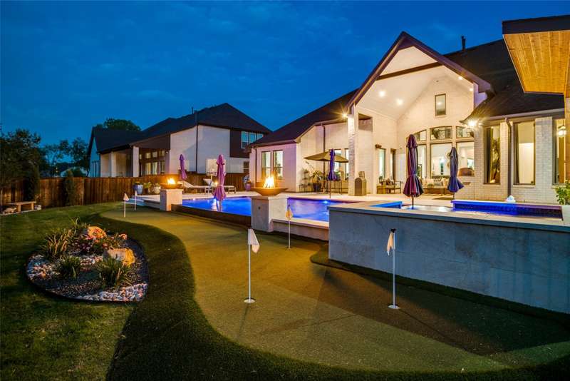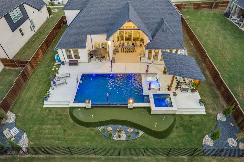 Experience exceptional design and modern comfort in this impressive 2-year-old, two-story home featuring 5 spacious bedrooms, 4.1 baths, and a wealth of upscale amenities tailored for contemporary living. Thoughtfully maintained, the open-concept layout is perfect for both entertaining guests and day-to-day enjoyment. At the heart of the home is a dramatic living room with soaring ceilings and a cozy fireplace, overlooked by a generous upstairs loft. The gourmet kitchen, complete with a walk-in pantry, seamlessly connects to a formal dining room and a bright breakfast nook, all bathed in natural light. With two expansive family roomsone on each levelplus an upstairs media room and a dedicated home office, there's plenty of space to work, relax, and play. A private in-law suite on the main floor includes a bedroom, full bath, and separate living area, offering flexibility for guests or multigenerational living. The main-level primary suite provides a spa-like retreat with a luxurious ensuite bath and walk-in closet. Upstairs, a second primary suite also features a private bath and walk-in closet, ideal for extended family or visitors. Additional highlights include a 2-car attached garage and a large attic for storage. Step outside to your personal backyard oasiscomplete with a covered patio and built-in grill, sparkling pool, hot tub, cabana, and custom putting greenall surrounded by lush, professionally landscaped grounds. This move-in-ready home combines luxury, functionality, and resort-style amenitiesall within a beautifully designed space just two years young.