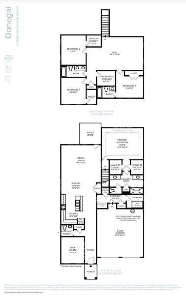 The expertly crafted Donegal by Toll Brothers boasts a seamless, open-concept floor plan that complements modern living with luxury touches. A charming foyer and flex room lead into the impressive great room, central to a casual dining area and the stunning kitchen that features an oversized center island with breakfast bar, sizable pantry, and plenty of counter and cabinet space. The primary bedroom suite is secluded off the great room, complete with dual walk-in closets and a serene primary bath complete with separate vanities, a luxe glass enclosed shower, linen storage, and a private water closet. Adjacent to a versatile loft on the second floor are the secondary bedrooms, one with a private bath, and two with walk-in closets that share a hall bath with dual-sink vanity. Additional features of the Donegal include first-floor laundry, an everyday entry, a powder room, and ample additional storage.