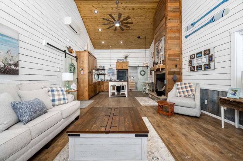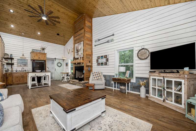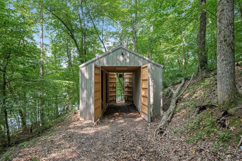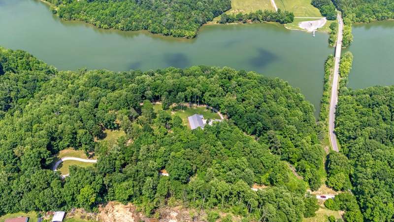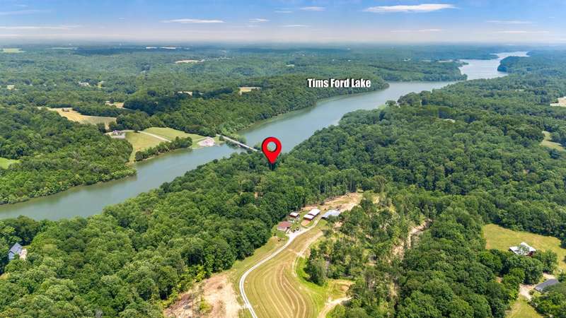 Discover a one-of-a-kind opportunity to own 19.4 acres on beautiful Tims Ford Lake offering over 1100 ft. of shoreline. This rare lakefront property features multiple potential building sites, making it ideal for private estate, family compound or future development. A custom-built Barndominium adds unique value, boasting a spacious 36' deep garage with 3 oversized bays- perfect for storing boats, vehicles or equipment and a 16'x80' covered back porch area ready to be finished. With direct access to the lake, this property is a dream for outdoor enthusiasts offering endless recreational possibilities right for your backyard. Serenity, space and potential awaits!!