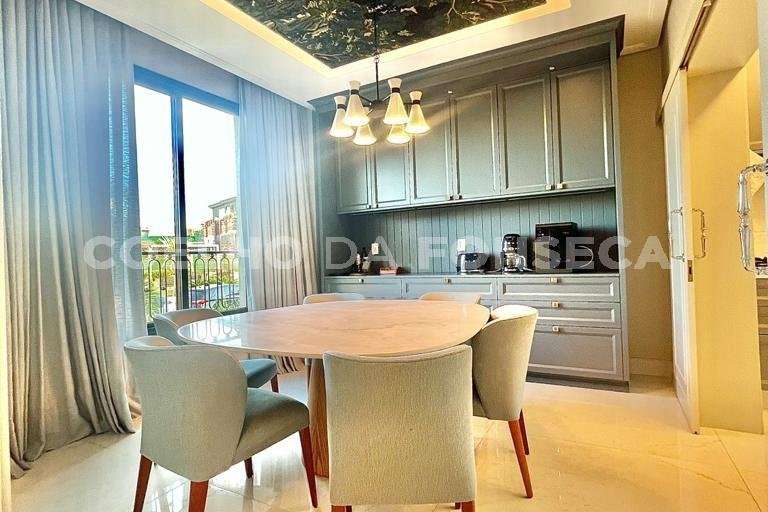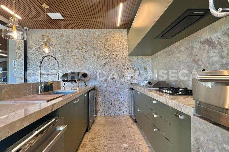 Magnífica residência na Quinta do Golfe Jardins, totalmente mobiliada, oferece uma deslumbrante vista. Dispõe de 5 suítes, ampla sala em 3 ambientes, sala de cinema para 25 pessoas, escritório, elevador, adega para 400 garrafas, churrasqueira parrilla LarGrill (70k), piscina infinita com vista para o campo de golfe, privacidade total, aquecimento solar e energia fotovoltaica. A Quinta do Golfe possui extenso projeto paisagístico, 800 mil m² de áreas verdes, vizinho a reserva ambiental com mais de 2 milhões de m². Clube de lazer com piscina semiolímpica, recreativa, quadras de tênis, campo de futebol, poliesportiva, salão de jogos, academia e salão de festas. Club house com restaurante integrado ao excelente campo de golfe de 18 buracos.