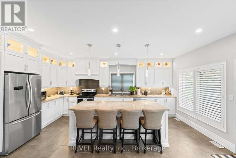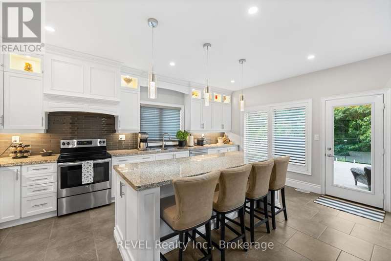 Tucked back into one of Niagara's most prestigious neighbourhoods is this heart stoppingly beautiful stacked stone and stucco loft bungalow. Beautifully landscaped large property backing onto the Niagara Escarpment on the "Fonthill Kame" which is the highest point in the Niagara Region and overlooks the beautiful receding escarpment and surrounding area.3 beds up + 2 below grade. 4 baths. 3 door full sized 3 car garage. Main floor primary with extremely large walk in closet and primary ensuite including freestanding tub and walk-in shower as well as double sink vanity with granite countertop. Main floor laundry/mud room at garage entry.Large separated pantry beside the mudroom. Front foyer/bedroom at main entry. Large main floor bathroom with walk in shower and huge vanity with granite countertop. Gourmet kitchen with led showpiece top cabinets and massive prep/breakfast island with granite counters. Showpiece black walnut engineered hardwood flooring throughout the main floor with gorgeous tile in the kitchen and baths. Absolutely stunning oak staircase with full height newel posts and matching oak balusters, railings and steps lead to the private loft suite with large bedroom, full size 4 piece bathroom, and study/living area overlooking the main floor. Main floor deck walkout with beautiful direct views of the escarpment behind the home and amazing vantage point overlooking the receding valley all the way down to Lookout Point Golf and country Club. The lower level is at grade in rear with full size windows and basement walkout to covered patio and entertaining area. Lower level includes 2 large bedrooms plus a beautiful 3 piece bath and open entertainment area. Finishing off the lower level is the utility room with hot water on demand system, cold storage room, and separate storage room with sump as well as closets for linens and more storage. Basement professionally finished by the builder. ** This is a linked property.** (id:7434)