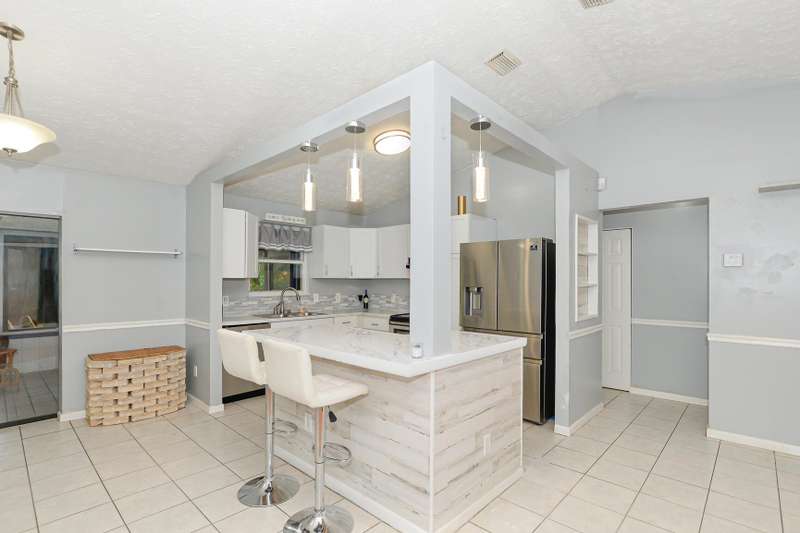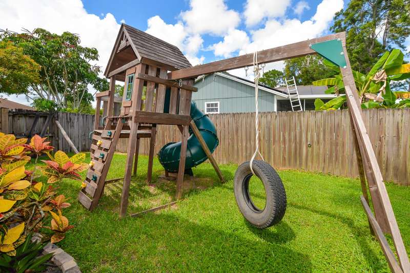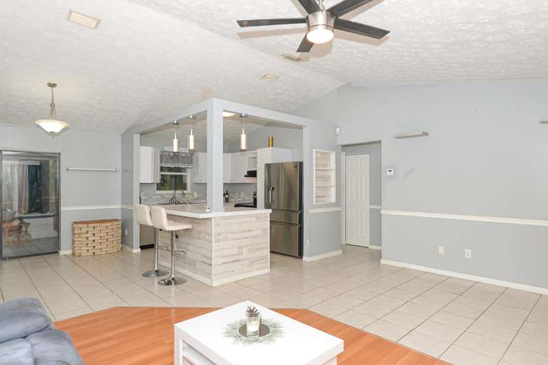 This Screened Pool home is a perfect starter and just needs some TLC from its next owner. Featuring 3 Bedrooms, 2 Bathrooms, 1 car garage, it offers a split floor plan with a spacious master suite and walk in closet. Roof (2018) and A/C (2021) provide peace of mind. The open layout connects the living, kitchen and dining areas, with sliders that fully open to the large Florida room. Enjoy the covered Florida room/patio with outside weather windows to open for a breeze or close if needed , fully screened enclosure, and fenced backyard (2018) with mature trees for privacy. Extras include playset, hot tub, and fire pit-all can stay or be removed before closing. Great neighborhood with quick access to I-95. Easy to show, flexible seller, and open to some concessions-bring your offer toda