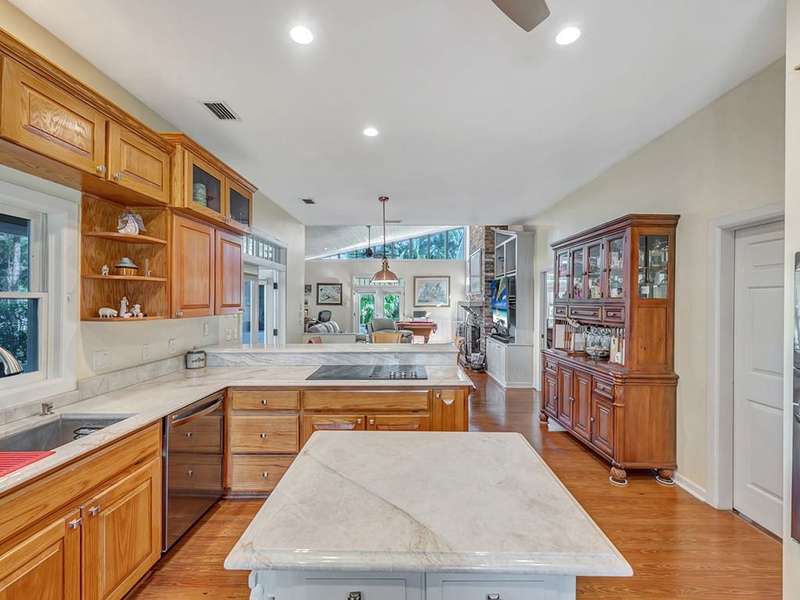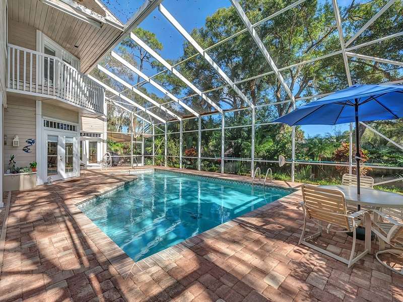 .52 acre in Old Sugar Mill Ests. 4BR/4BA+Den. New Roof 23 & repiped 22! Island kitchen w/quartz & stainless appliances opens to Family rm w/cathedral ceilings; updated baths; Frplc in living & family rms; Oak floors; Oversized 2 car garage w/workshop. Lovely landscaping; gazebo & large screened pool area. Fantastic location quick trip to beaches & shopping. Sizes are approx/subj to error.