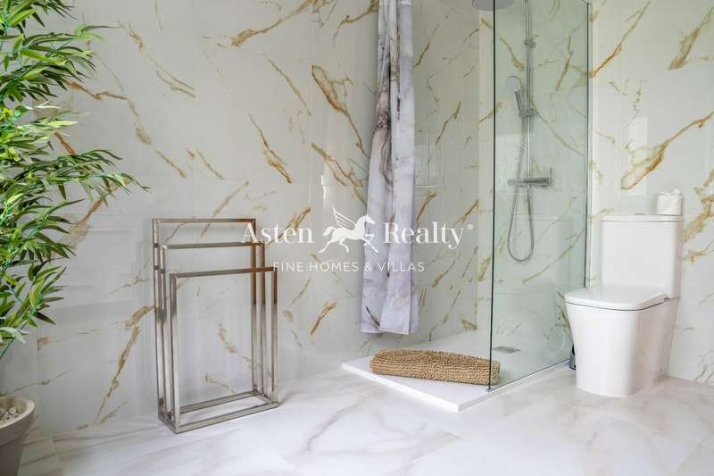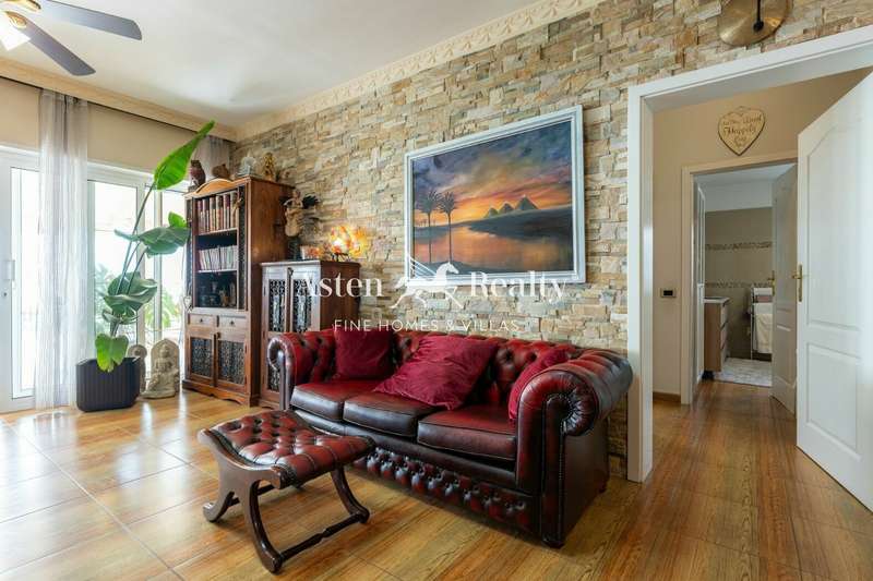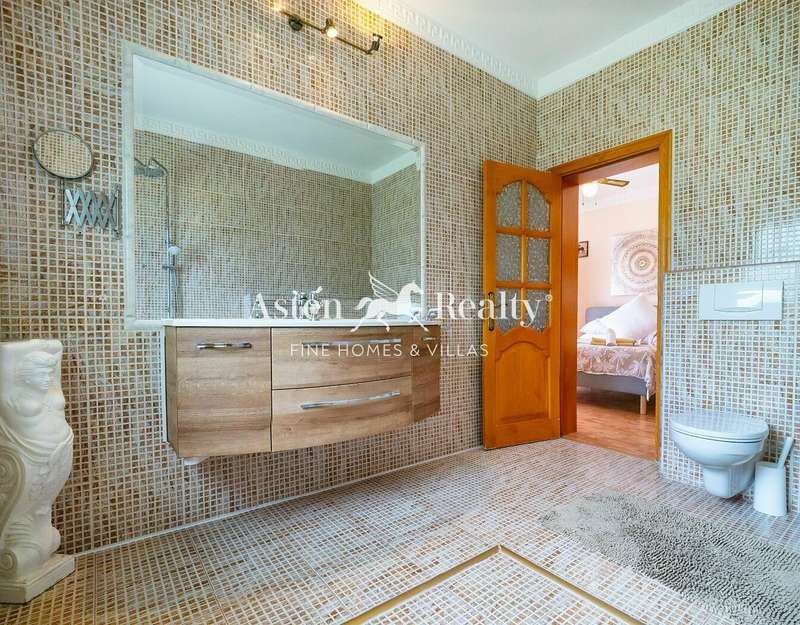 The villa is divided into two separate living areas, each with access to magnificent outdoor facilities. On the upper floor, spread over two levels and currently used for holiday rentals, there are four bedrooms, two of which are en-suite, an additional family bathroom and air conditioning in the master bedroom. On the ground floor, there are two spacious family suites, each with two bedrooms and en-suite bathrooms, as well as a guest toilet, a large living-dining room, a designer kitchen with integrated dining area and a laundry area with access to the outside.