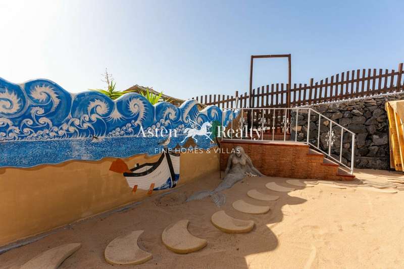 The exterior of the villa is a true paradise: a swimming pool with an integrated bar, a large jacuzzi, waterfalls decorating the surroundings, relaxation areas with outdoor showers, landscaped areas and a private ‘beach’ area ideal for games, celebrations and children’s activities, equipped with its own bathroom and shower. All this is complemented by a barbecue area and ample parking spaces.