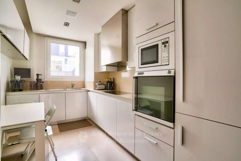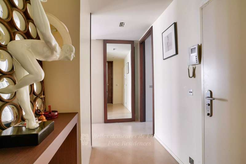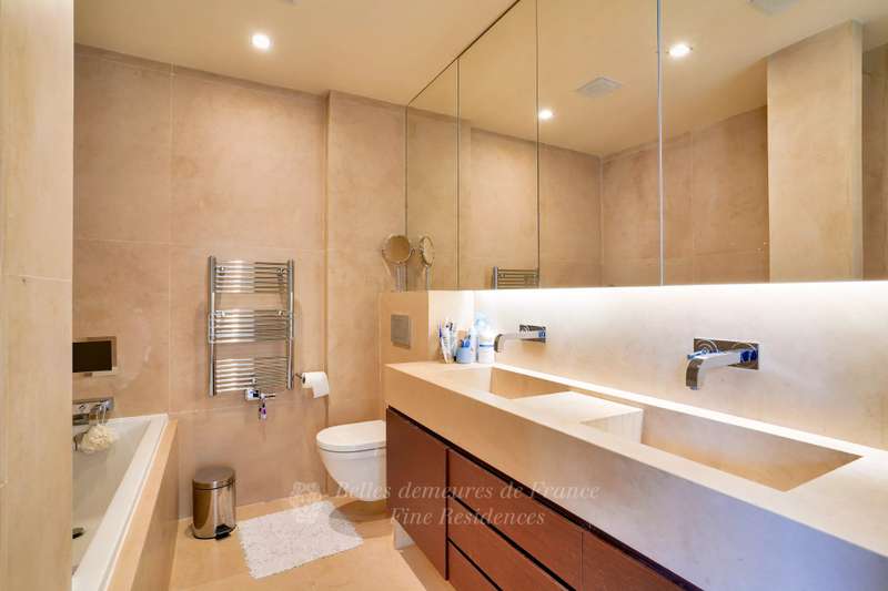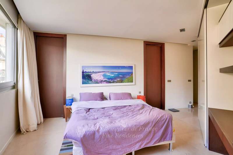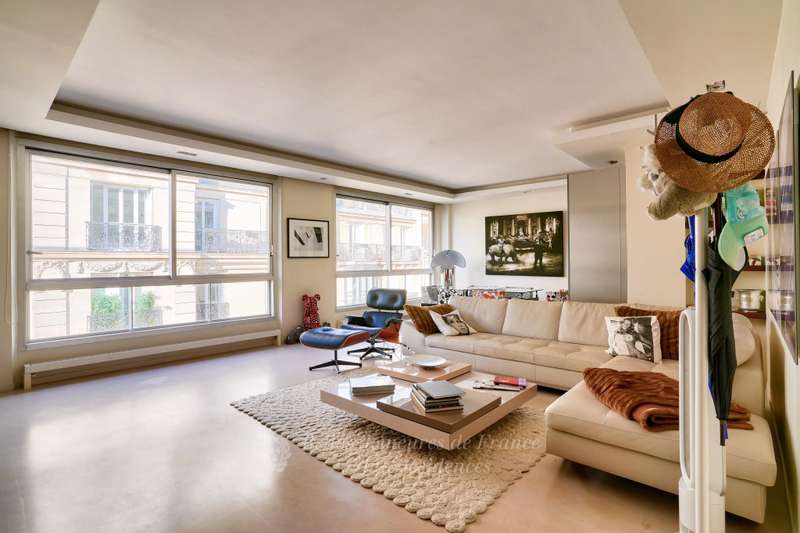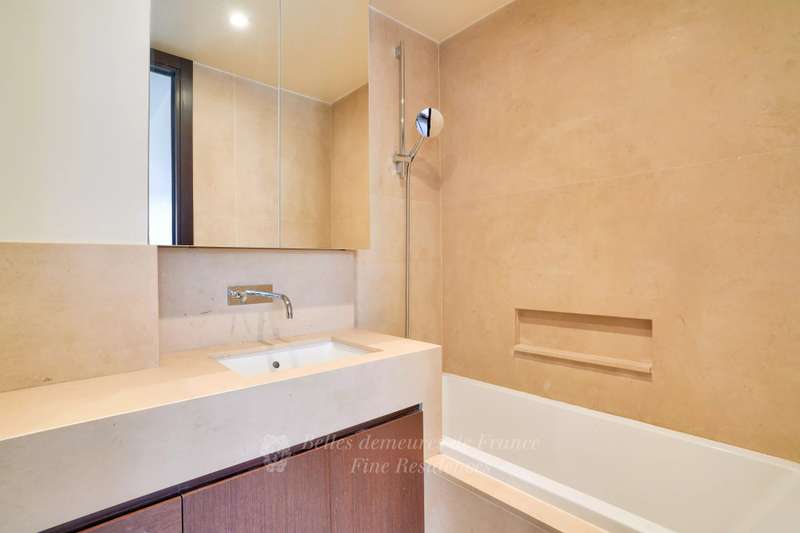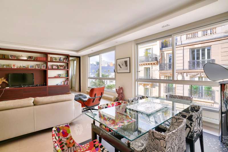 Rue de Chaillot. This bright 105 sqm apartment in very good condition is on the 5th floor of a fine mid 20th century building with beautiful common areas. Enjoying a view, it includes a 41 sqm living/reception room, a fully equipped kitchen, a master suite with a bath/shower room and wc, a second bedroom with a bathroom, a guest wc, and a study or single bedroom. Ample fitted storage space. With a basement parking space and a cellar.