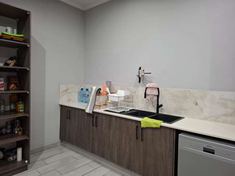 For Rent ?Çô Modern Elegance Meets Everyday Comfort Step into a world where style and comfort blend seamlessly in this fully renovated, entertainer?ÇÖs dream home in the heart of Ext 16. Spacious, modern, and designed for effortless living, this property offers everything you need ?Çö and more. Interior Features: Chef?ÇÖs Dream Kitchen ?Çô Contemporary design with granite tops, ample cupboard space, SMEG oven and gas stove, and room for a double fridge. Massive Pantry & Scullery ?Çô Plus a separate laundry room and an additional domestic/storage room. Open-Plan Living ?Çô Family room with fireplace flows into the dining area with a custom coffee station, feature cupboards, and fitted downlights. Entertainment Paradise ?Çô Expansive entertainment room with its own kitchen, bar, and built-in braai (accessible from two sides), guest toilet, and two large stack doors opening to the lush garden. Private Living Quarters: Study / Home Office ?Çô Or optional small bedroom, fitted with a corner desk and built-in cupboards. Two Spacious Guest Bedrooms ?Çô Filled with natural light and built-in cupboards. Designer Guest Bathroom ?Çô Featuring a freestanding bath and shower. Luxurious Main Suite ?Çô Air-conditioned, with a walk-in dressing room, built-in cupboards, dresser with touch-light mirror, and a breathtaking ensuite with freestanding bath, shower, and his-and-hers basins. Garages & Parking: Massive 6-Vehicle Garage ?Çô With two large automated doors, perfect for cars, trailers, or caravans. Additional Single Garage ?Çô Plus two covered carports. Extras & Security: 10,000L JoJo tank. Generator switch-over for uninterrupted power. Alarm system for peace of mind. Please note: Water and other municipal services are not included in the rental. This exceptional home offers a lifestyle of sophistication and comfort, perfect for families and entertainers alike. Call today to secure your viewing and make this exquisite property your next home!