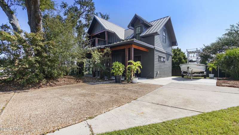 'CURRENTLY UNDER CONTRACT, SELLER WILL CONSIDER BACKUP OFFERSCustom Bayview Living Near Tyndall AFBWelcome to this stunning custom home showcasing breathtaking water views of East Bay in Panama City, Florida. Thoughtfully designed with quality and comfort in mind, this residence features high-end windows and doors, soaring 10-foot ceilings, and an abundance of natural light that highlights every detail. A durable standing seam metal roof adds timeless appeal and peace of mind.Inside, the home comes fully equipped with all appliances, including washer and dryer, making it truly move-in ready. Just a few blocks away, enjoy the convenience of the public boat ramp for effortless access to fishing, boating, and water recreation.Perfectly situated only 15 minutes from Tyndall Air Force Base, this home could be an ideal fit for military families who love the outdoors and coastal living. With modern features, scenic water views, and an unbeatable location, this property is ready for you to call home.No surveyOther features: 30 AMP Plug on exterior,Termite Bond ( Waynes)Anderson Windows and Thermatrue Doors,Beautiful Built in/ Master Closet,Outdoor Shower,Whole Home Dehumidifier,2 living and dining spaces,Beautiful Balcony with Beautiful Wood Beams and Beautiful floors!!