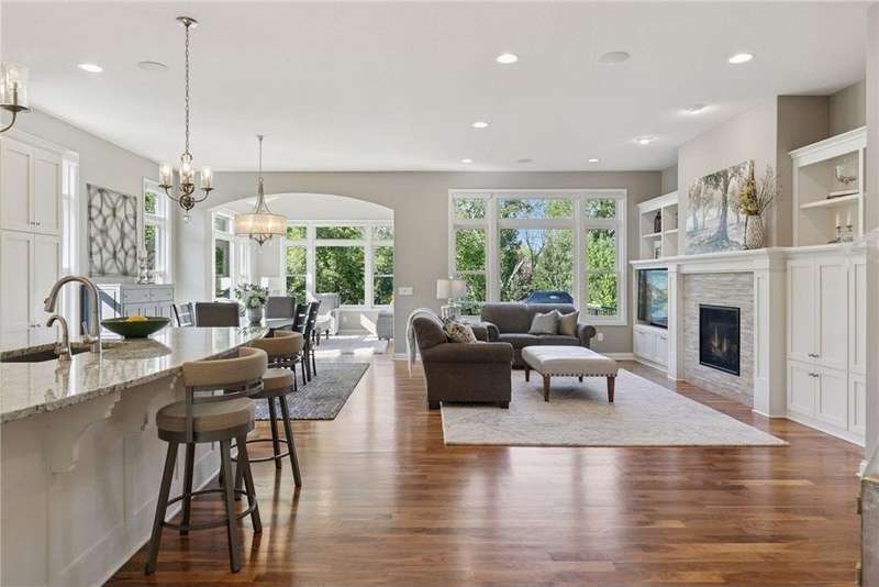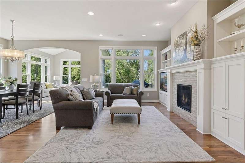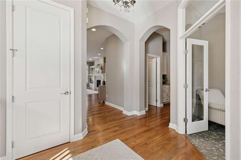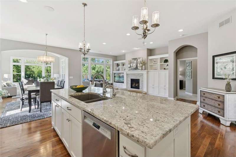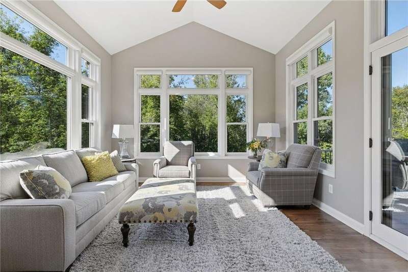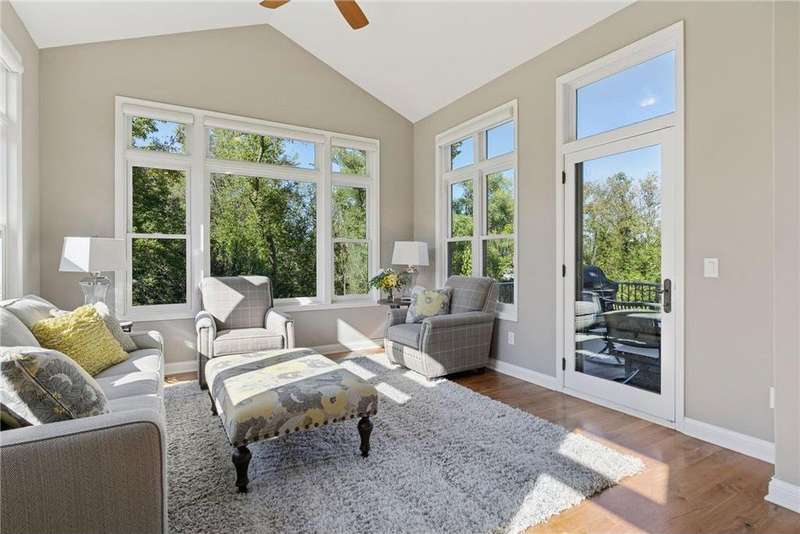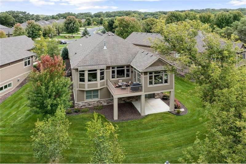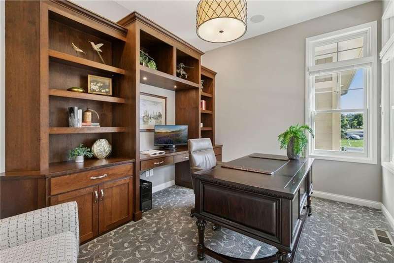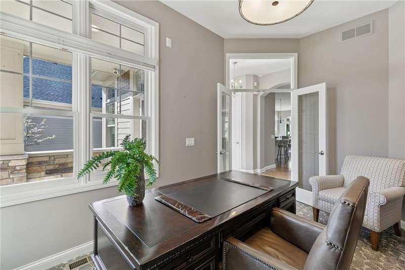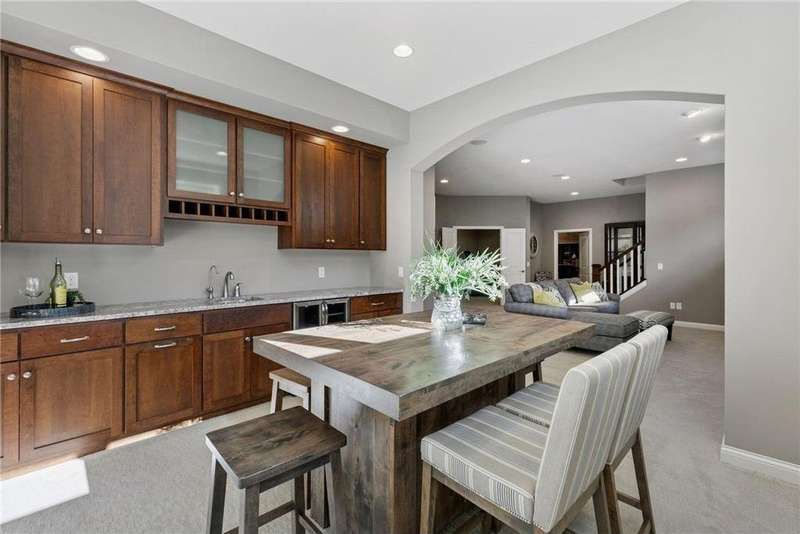 Experience luxury living in the sought-after Bellante neighborhood. This stunning rambler-style detached villa sits on a quiet cul-de-sac, offering serene wooded views and the perfect blend of comfort and sophistication. Designed with exceptional craftsmanship, the home showcases rich black walnut hardwood floors, custom cabinetry, 10' ceilings on both levels and built-ins throughout. The main level features a gourmet kitchen with granite countertops, abundant storage, and a spacious dinette, complemented by a vaulted sun-drenched sunroom. A private office, convenient laundry, and a luxurious primary suite with spa-like bath and dual walk-in closets complete the main floor. The walk-out lower level is designed for both relaxation and entertaining, with a family room featuring a fireplace and built-ins, a custom bar with sink and beverage fridge, a game room, and plenty of storage. From thoughtful details to top-tier finishes, this home truly has it all. Brand new roof 2025. Buyer and buyer's agent to verify measurements.