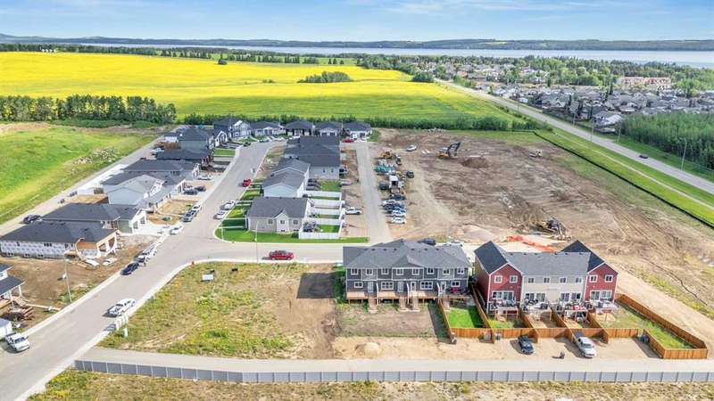 Welcome to Grayhawk — Sylvan Lake’s most exciting new subdivision! This stunning end-unit townhome built by True-Line Homes offers the perfect blend of comfort, style, and functionality in a family-oriented community just minutes from the lakefront, golf course, and town center amenities. With 1,280 sq ft of beautifully finished space, this home features 3 bedrooms, 2.5 bathrooms, and upstairs laundry for added convenience. The open-concept main floor showcases 9’ ceilings, quartz countertops, upgraded cabinetry and flooring, and a sleek appliance package. Enjoy energy efficiency and comfort with Low-E windows, upgraded insulation, and limited lifetime architectural shingles. Step outside onto the rear wood deck — a perfect spot for relaxing or entertaining. Located adjacent to the Sylvan Lake Golf & Country Club, Grayhawk is designed for modern living with future plans for a school, commercial area with shops and services, parks, playgrounds, and multiple housing options — all within a few minutes of the waterfront. Be one of the first to call Grayhawk home and take advantage of this incredible opportunity to own in a thoughtfully planned, up-and-coming community.
