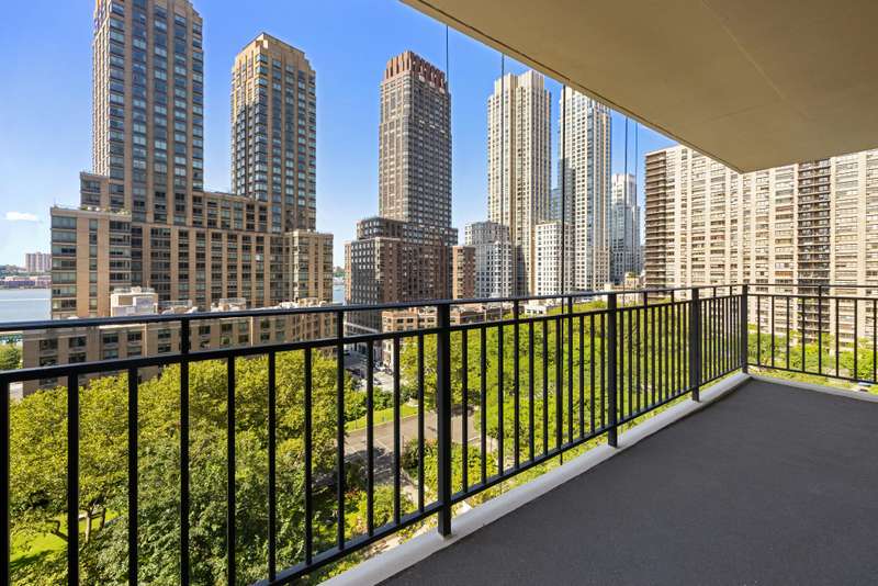 Perched on the 10th floor of 165 West End Avenue, the apartment offers sweeping Hudson River views as well as tranquil vistas of Lincoln Towers" private gardens and lush treetops. A private balcony of over 19 feet extends your living space outdoors-an idyllic retreat for morning coffee, alfresco dining, or enjoying dramatic sunsets.