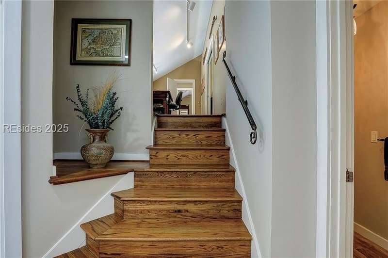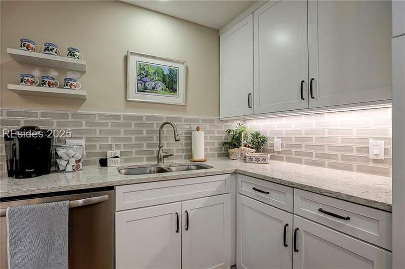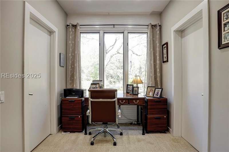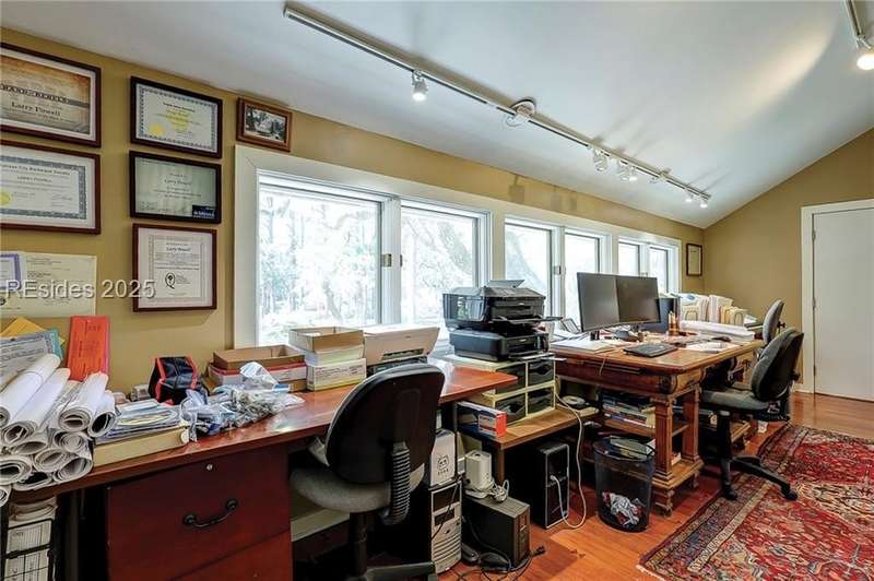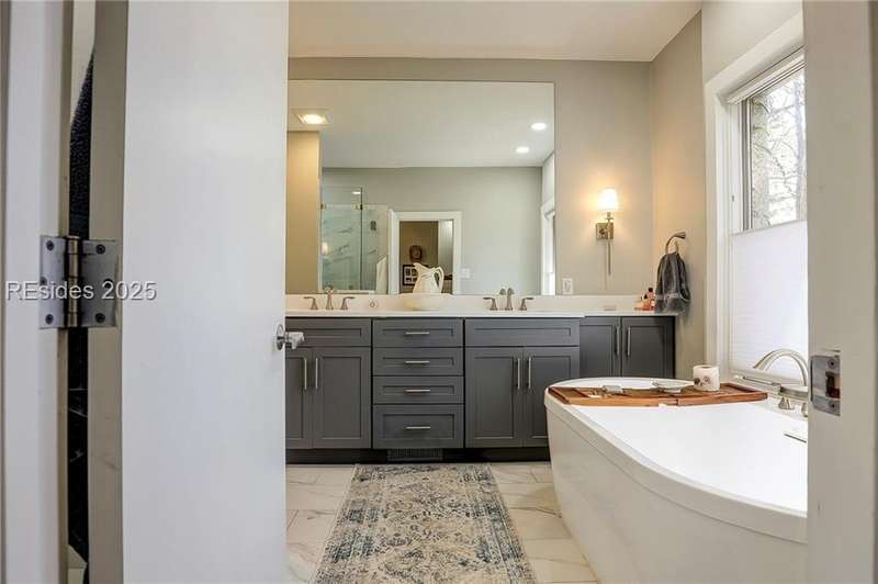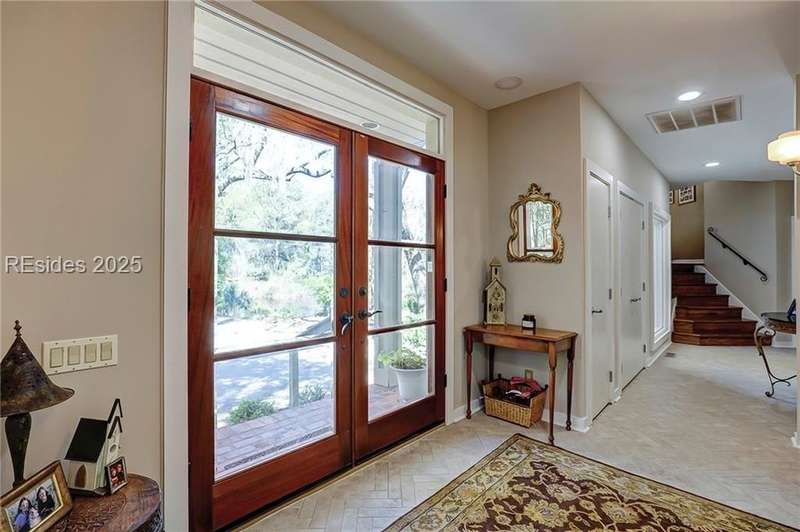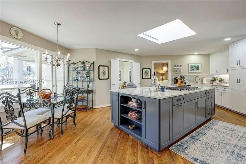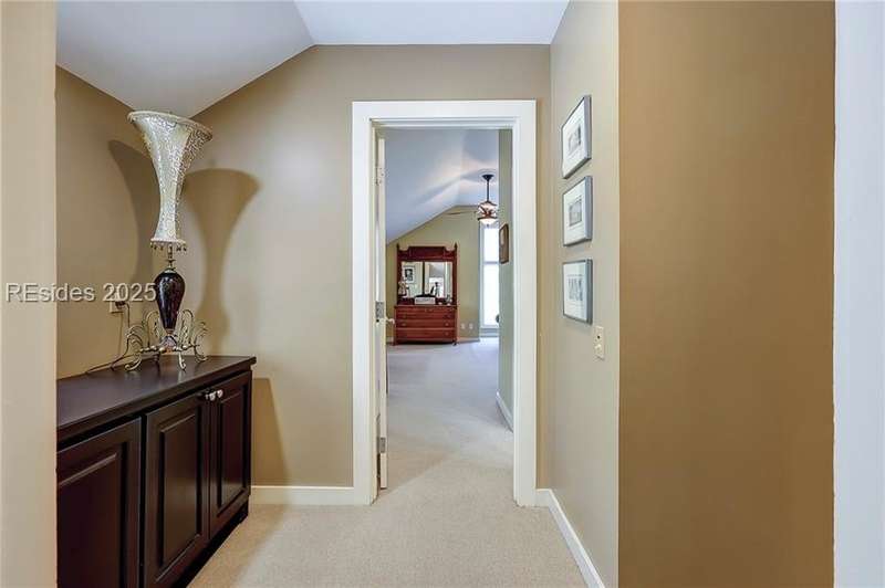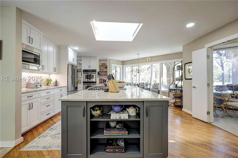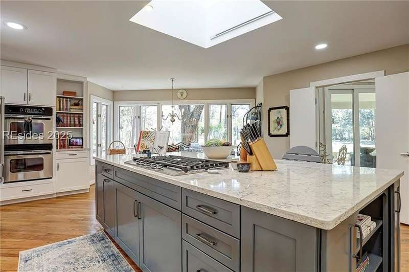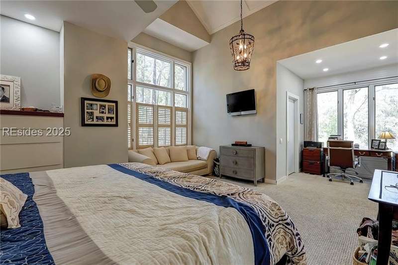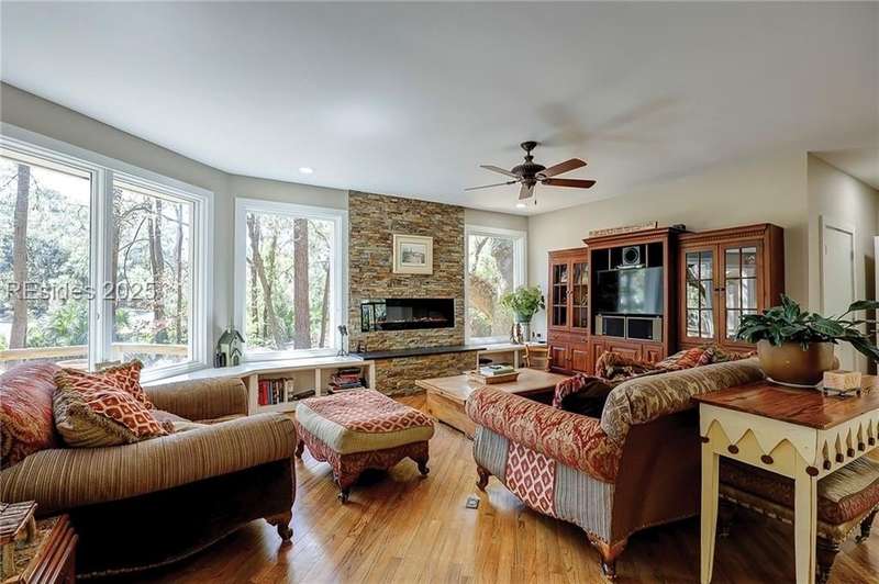 Nestled within the secluded, private Spanish Wells Plantation, this exceptional remodeled four-bedroom home offers a tranquil retreat on a sprawling, approximately 1.21 acre lot. The property is a nature lover's dream, with its unique position bordered by serene lagoons on two sides and a lush, manicured golf course on the third. The home itself sits majestically on a tree-covered lot, where beautiful oaks draped in Spanish moss create a picturesque and timeless setting. The design of the house takes full advantage of its surroundings, with brand new Kitchen and Master Bath complete. Additional features include attached greenhouse, separate entry for bedroom suite, walk-in attic, large covered porch, private fountain overlooking aviary at side elevation. Expansive windows and covered porch provide stunning views of the water and the fairways. Inside, the four bedrooms provide ample space for family and guests, each offering comfort and privacy. The common areas of the house are designed for both relaxation and entertaining, seamlessly blending with the natural beauty outside. This unique property offers a rare combination of privacy, natural elegance, and convenient access to a world-class golf course, making it a true sanctuary. Easy stroll to Spanish Wells Club with golf/tennis/swimming pool/dining, etc... available with optional membership.
