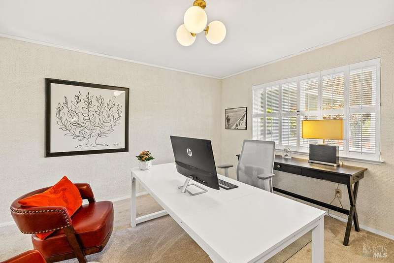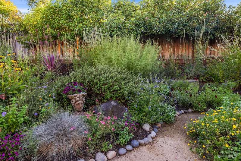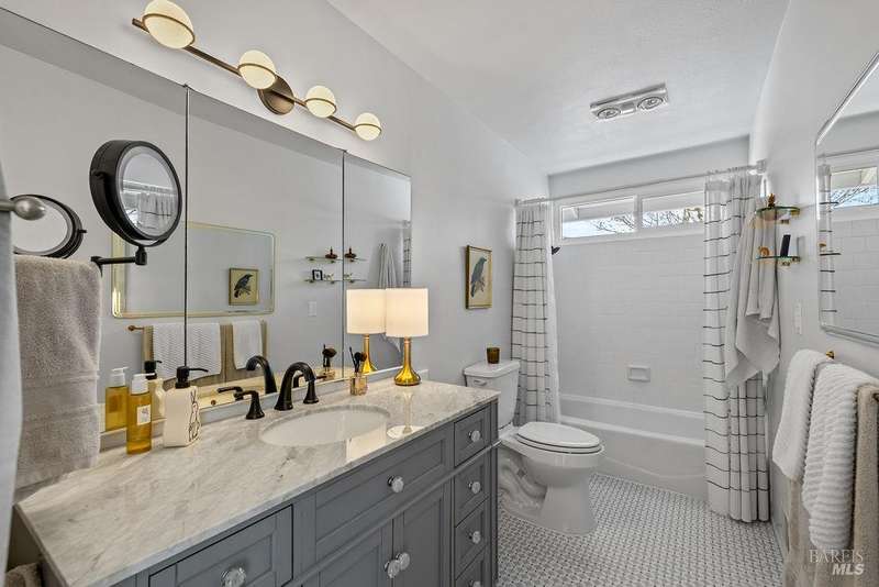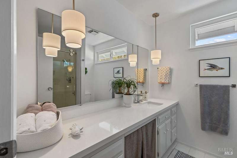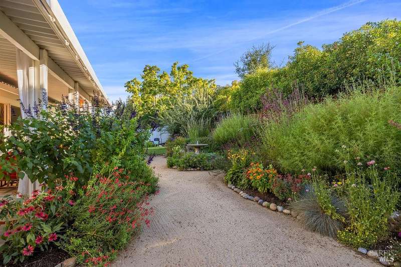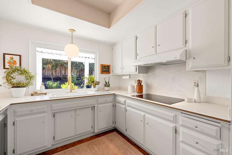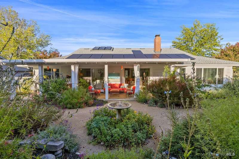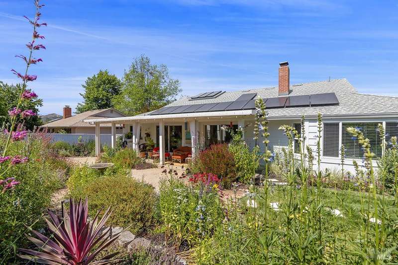 Move-in ready with extensive remodeling including new heat pump HVAC, water heater, new windows and sliding doors throughout, freshly painted exterior and brand-new roof. Rare, large, private backyard with sculpted lawn and pollinator garden. Professionally landscaped front yard. This home offers a peaceful retreat with seamless indoor-outdoor living. Step inside to find large windows that fill the rooms with natural light, creating an open and inviting atmosphere. The kitchen features all new appliances and an eco-friendly induction stovetop. The generous primary suite boasts large bay windows overlooking the lush, private backyard. The newly renovated primary bathroom features marble countertops and high-end fixtures, along with a reimagined layout for more space. The guest bathroom is bright and modern with quartz countertops and sleek new plumbing and light fixtures. All three bedrooms have new carpet and there is fresh paint throughout the house. With 1,953 sq ft of living space on a 9,280 sq ft lot, this 3-bedroom, 2-bath home balances comfort and privacy. Outside, enjoy colorful gardens, a covered patio, and just the right amount of lawn, perfect for entertaining or quiet reflection.