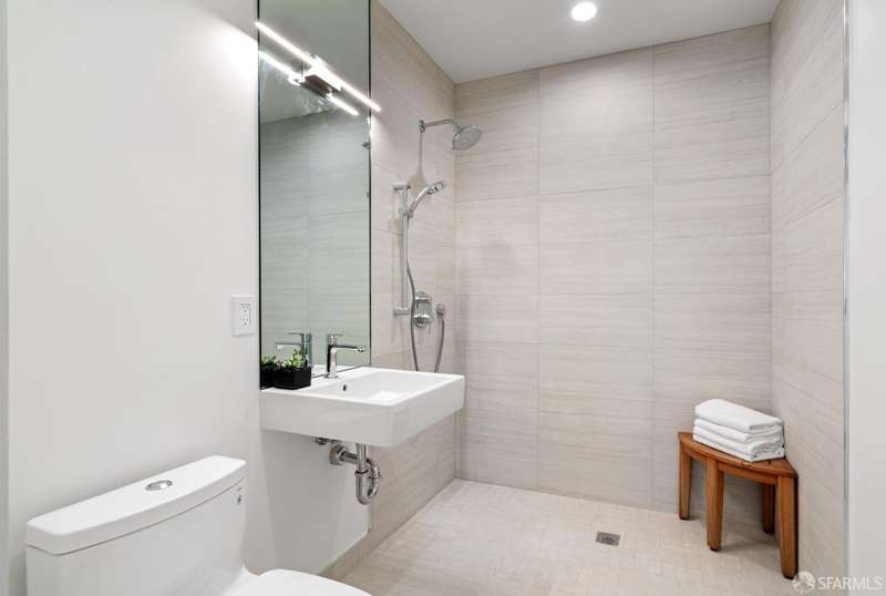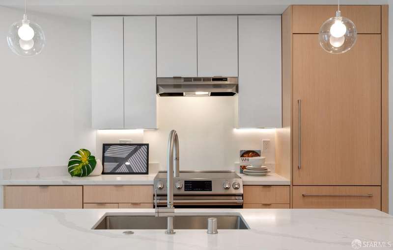 Located in Noe Valley's banana belt, this large studio-condominium with huge attached terrace boasts a fantastic floor plan with a large island kitchen including a fully integrated, cabinet-faced refrigerator, dishwasher, quartz countertops and under cabinet lighting. One luxurious bathroom is fit for a spa with designer tile finishes, quartz vanity top with dual under-mounted sinks, widespread faucets and walk-in shower with glass partition and hand-shower. Also included, underfloor heating (paid by HOA dues)!