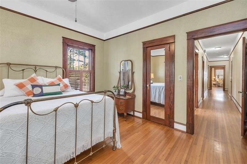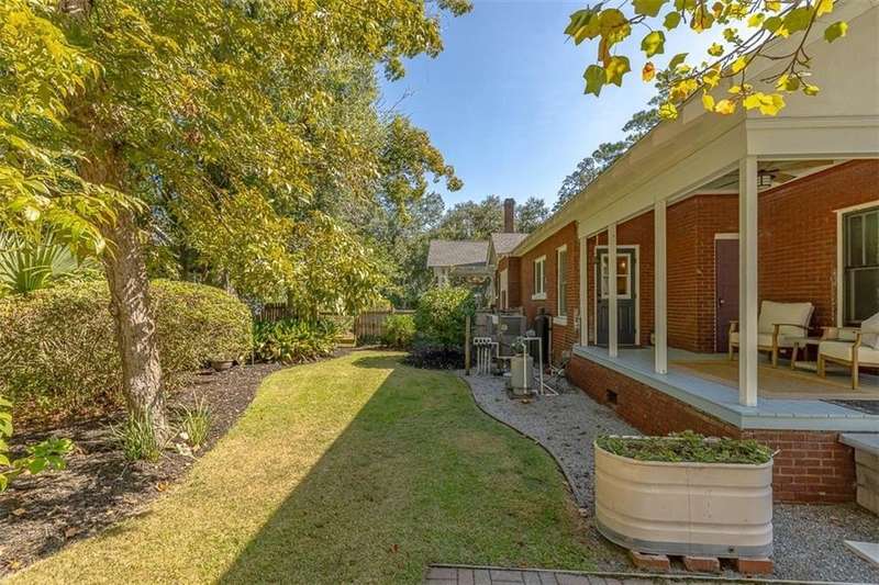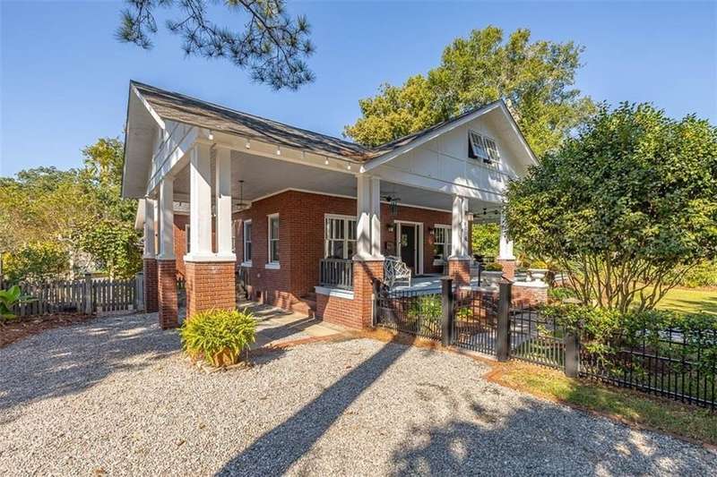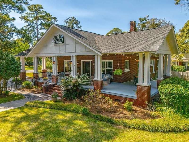 Beautiful brick Craftsman home built by a local favorite, Judge W.C. Little. This home that been beautifully restored to meet the needs of today's buyer while maintaining all the original woodwork and charm throughout. The main house is approximately 2600 sf offering 4 large bedrooms(Primary w/en suite), 2 full baths and 9 ft ceilings all on one level makes this home very appealing. The kitchen was renovated in 2016 with large Island, stainless appliances, gas range, granite counters, & custom cabinetry. Other updated items include newer roof, electrical, plumbing, on demand hot water, HVAC, spray foam insulation, irrigation well, & historically accurate insulated windows . This house sits on a large .41 ac corner lot that is fully landscaped complete with its own garden. The front has a fully fenced yard that you can enjoy the view from your wraparound front porch. Out back you'll find a storage shed and detached oversized 2 car garage w/half bath along with a fully remodeled 1 bedroom 1 bath apartment w/laundry and separate entrance that is approximately 1000 sf. It's perfect for guests that want some privacy or to generate rental income. There is also a hidden staircase to the attic that could be finished out as well if more space is needed. Don't miss the opportunity to tour this amazing South end home close to downtown shopping, restaurants, and events.