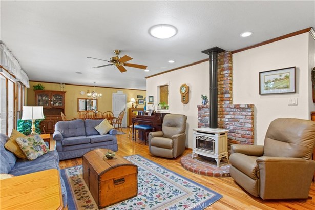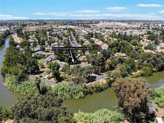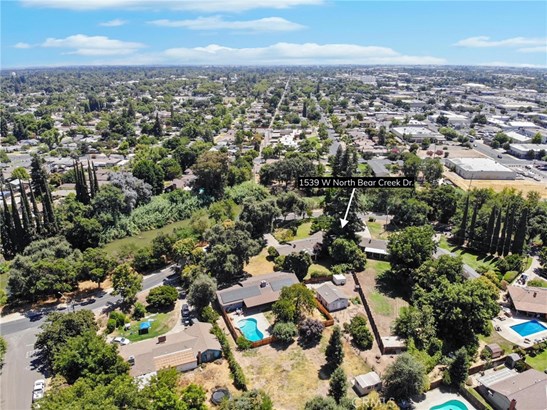 This property has a beautiful home on a large lot with a good sized shop! Even during the 2022 storms this home stayed dry! You will fall in love with this beautiful and immaculate home that sits on over a third of an acre! The cute front porch looks out onto a large front yard which has views of the beautiful trees along Bear Creek. The home has a remodeled kitchen with granite countertops and lots of storage! There are well maintained hardwood floors and plenty of natural light brought in by windows and skylights. The HVAC was replaced in 2020 and a 40 year roof was installed in 2006. The backyard has a custom built covered patio that is perfect for entertaining family and friends. The large backyard has been beautifully landscaped and includes mature trees. The back of the lot has a 480 square foot shop with new siding and a new roof. The shop has water and a 220v electrical wiring that can be accessed by a vehicle through the drive through garage. Keep the shop as a work area or potentially convert to an ADU. The back of the lot also features a shed, a generous garden area, as well as mature fruit and citrus trees. Come see this home as it won't last long!