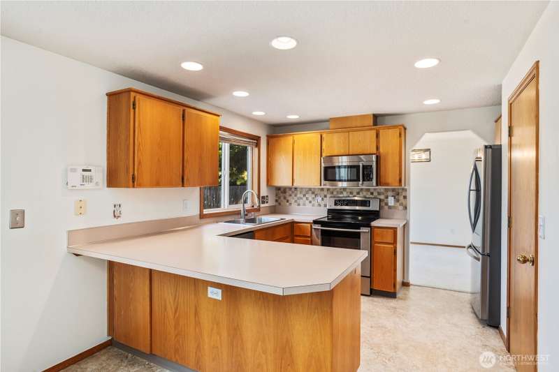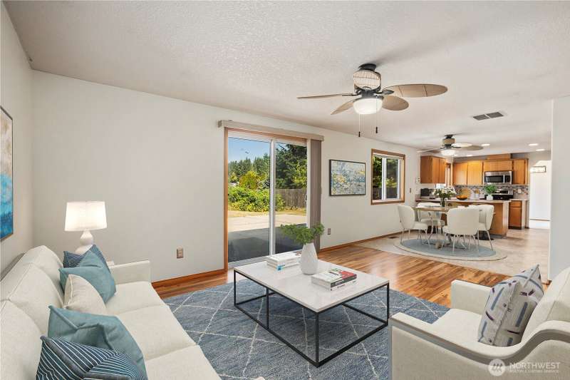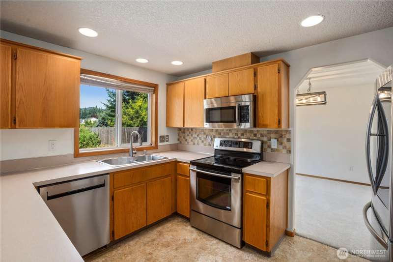 This charming 4-bedroom, 2.25-bath Home in Longview has been beautifully updated with a New Roof, Siding, Exterior Paint, Gutters, Skylights, and Carpet throughout. Step inside to find a spacious Primary Suite with vaulted ceilings and a Private En-Suite Bath. The versatile 4th bedroom is oversized, making it ideal as a flex space, playroom, or home office. Situated on an oversized lot in a quiet, established neighborhood, this property provides both privacy and space for outdoor enjoyment. Imagine summer evenings in the backyard, room for gardening, or simply relaxing in your own private retreat. Enjoy the outdoors with nearby trails, golf, shopping, and local amenities just minutes away. This home is move-in ready and waiting for you!