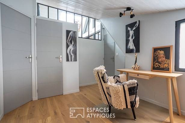 The annex which can be converted on two levels, with its large opening, suggests many possibilities: artist's studio, independent living space, etc.