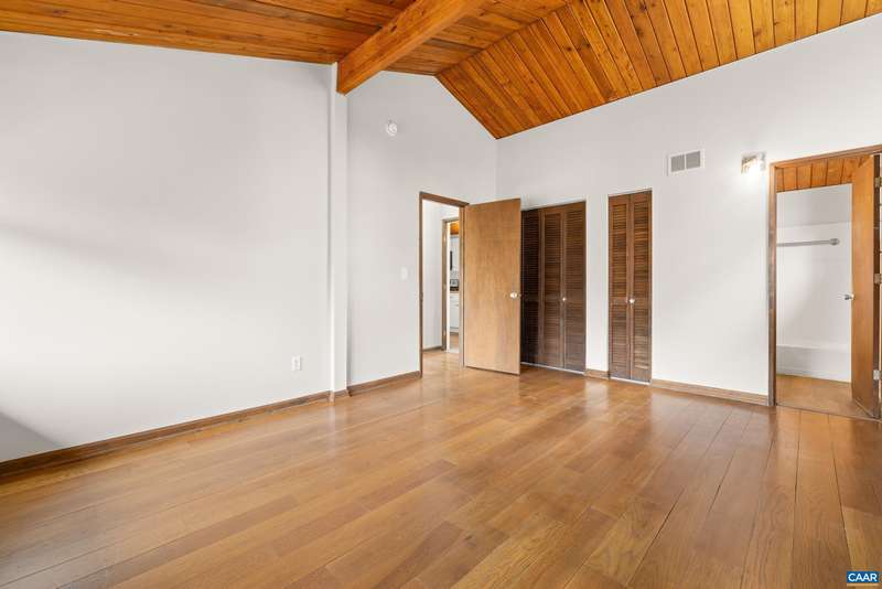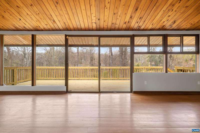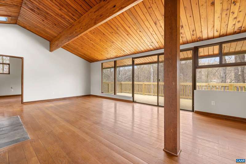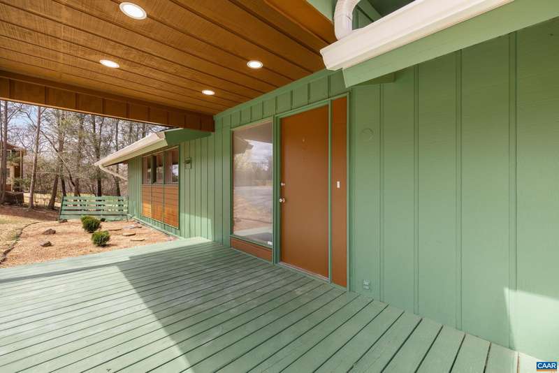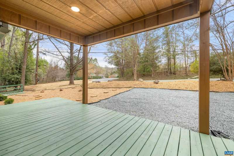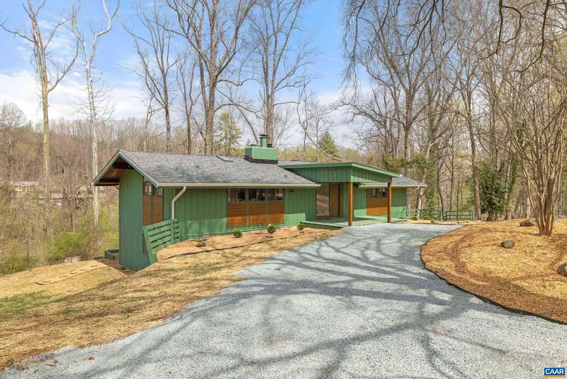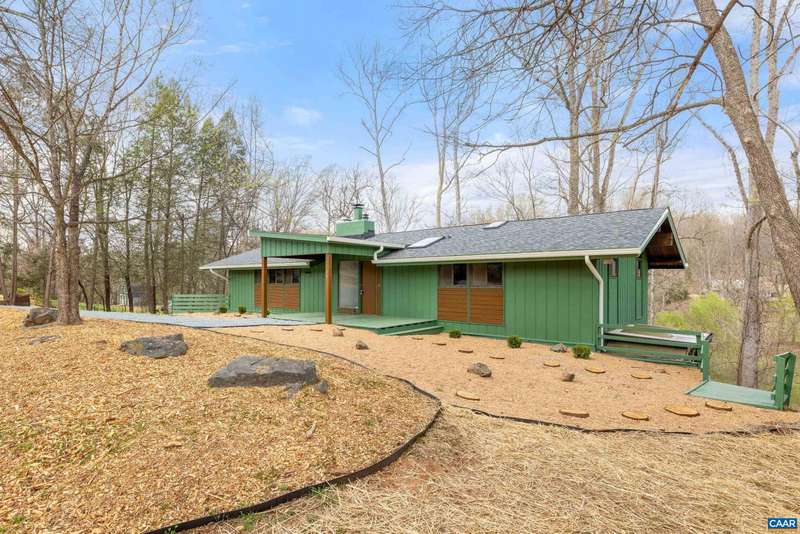 Wonderfully Upgraded Mid-Century Modern Retreat! Experience the perfect blend of nature, tranquility & modern elegance in this beautiful home on 1.5 serene acres, just minutes from Downtown Charlottesville. Thoughtfully designed landscape & brand-new modern front porch welcome you home. Step inside the light-filled foyer, where oversized exposed wood beams stretch across the entire length of the home, complementing the stunning wood-plank vaulted ceiling that enhances the spacious 1st floor. Enjoy your morning coffee on the new rear deck, overlooking the babbling stream that winds thru the back of your property. Brand-new kitchen is a chef's dream, featuring SS appliances, 2 pantries, new soft-close white cabinets, butcher block counters, an oversized single-basin sink, new LVP flooring, stylish light fixtures & a custom built-in eat-in area with storage. Bathrooms have been fully updated with new LVP flooring, modern lighting, new vanities & upgraded commodes. Unwind by the cozy fireplace in the living room, or head downstairs to the finished basement, complete with a coffered ceiling rec room, exposed wood beams, new LVP flooring, and 2nd large wood-burning fireplace. New roof, new skylights, new gutters & freshly painted!