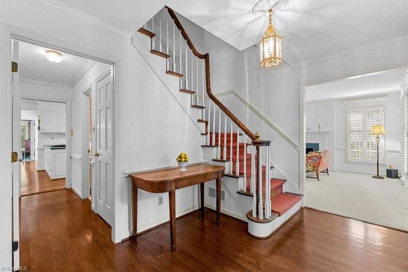 Freshly painted & new HVAAC on main level! Lovely Colonial style design with central front door, classic design & symmetry. Formal entryway with stairway opens to living rm w/firpl & dining rm that leads to appealing brick patio. Open kitchen w/wet bar & breakfast rm. library/office, laundry rm & more than comfortable family rm w/firepl plus two full baths & main level primary suite w/firepl completes the first level. Upper level boasts four bedrooms w/two full baths & good closet space. Outside garden closet & darling playhouse or additional storage bldg. Known for the beautiful roses that once graced the side garden this is a wonderfully loved & one owner home so hard to find in this day & age. Not to be missed opportunity to live on one of the best streets in New Irving Park. Roof replaced 2024.