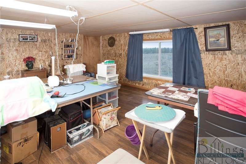 ~VA Assumable Loan~Minutes from Roundup, this versatile property offers views, land, wildlife, and a generous living space. The main level boasts a kitchen and dining room, generous bedroom with built-ins, a bathroom with a jetted tub and separate shower, laundry, and a living room. Upstairs offers a generous primary suite with multiple closets, an ensuite bathroom and office space. An additional bedroom/bonus room is located upstairs along with a carpenter's dream workshop. Your attached garage is ideal for parking and storage and this property provides additional level areas perfect for additional shops or outbuildings. Serviced by a producing and registered well, permitted septic, electric and propane along with a Generac generator for backup power. Located less than a mile from paved roads provides ease of access. Please do not drive on property with a confirmed appointment.