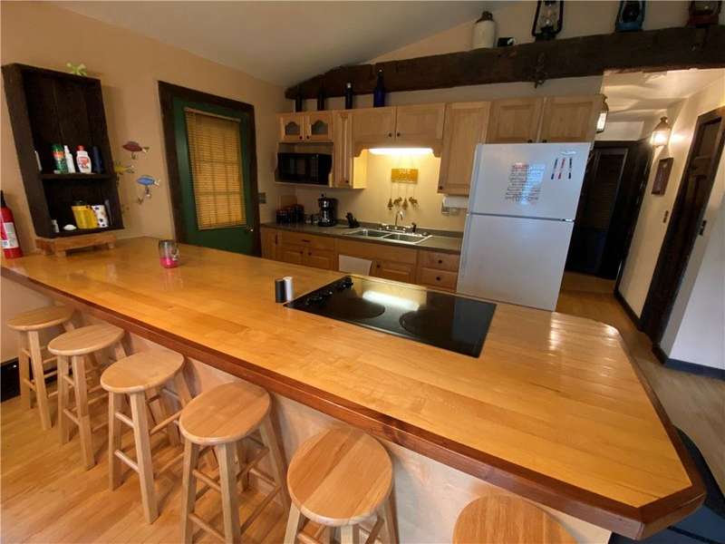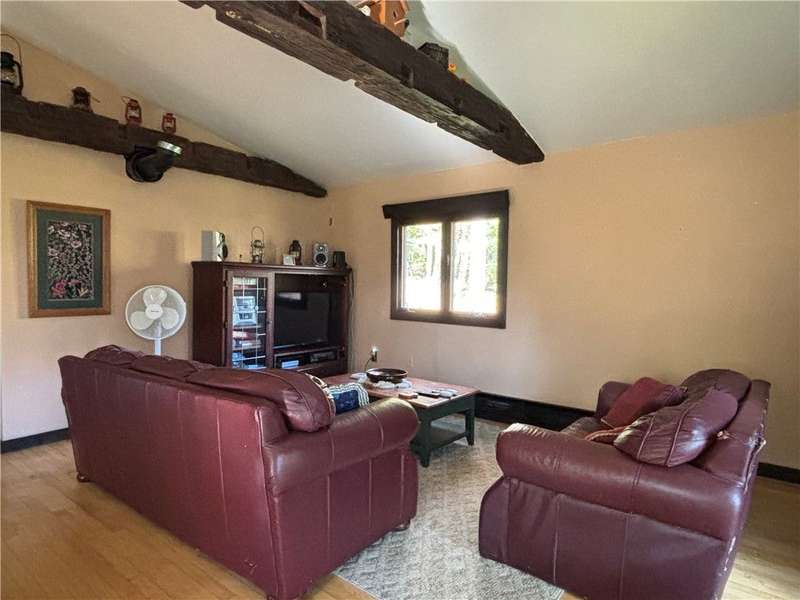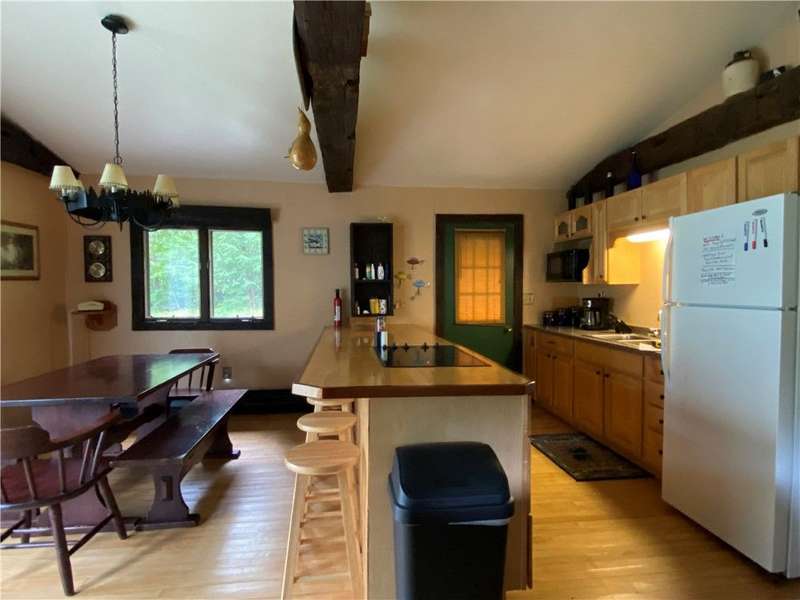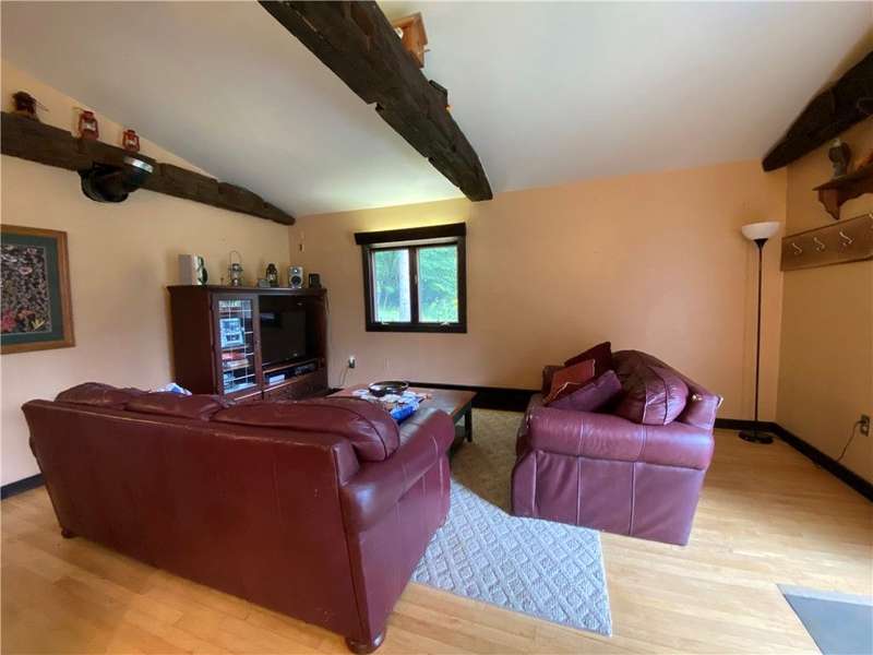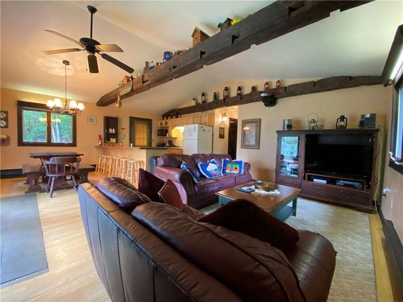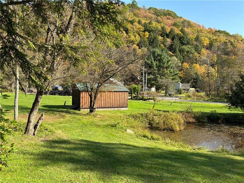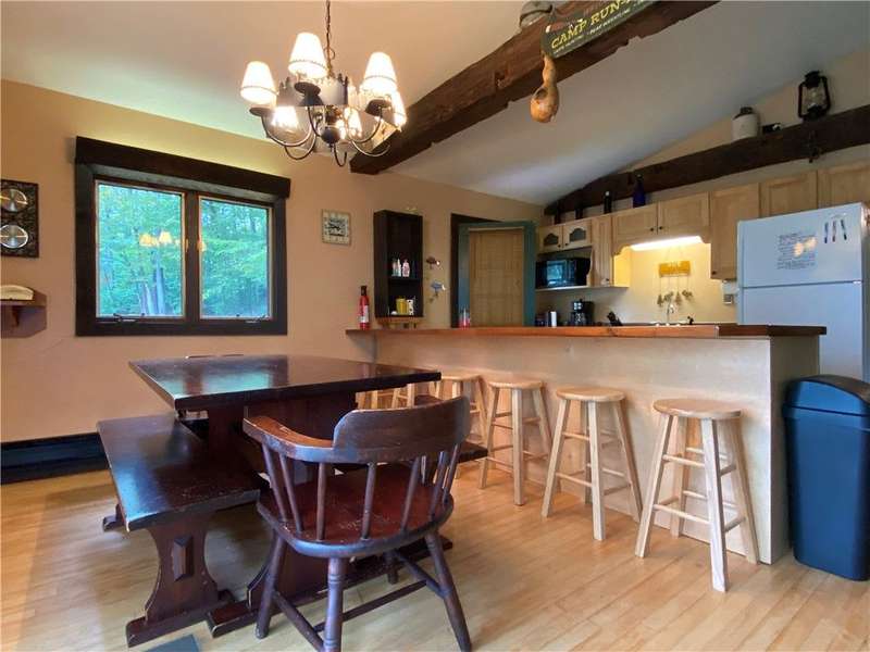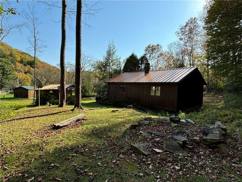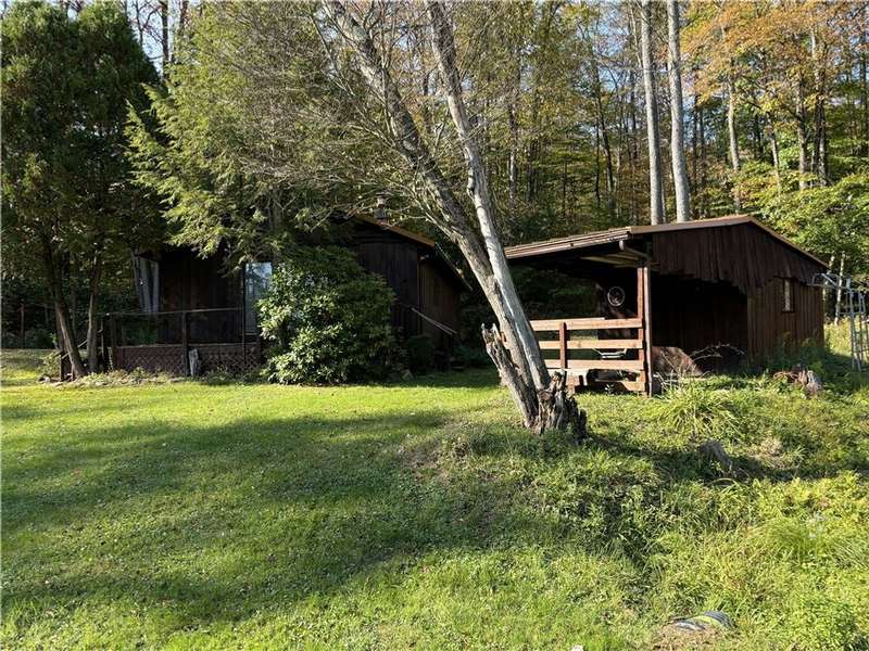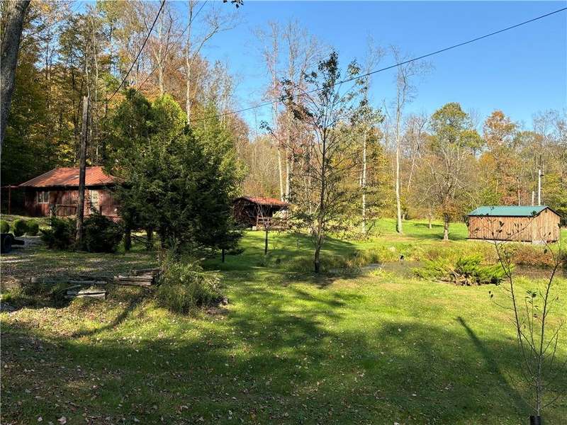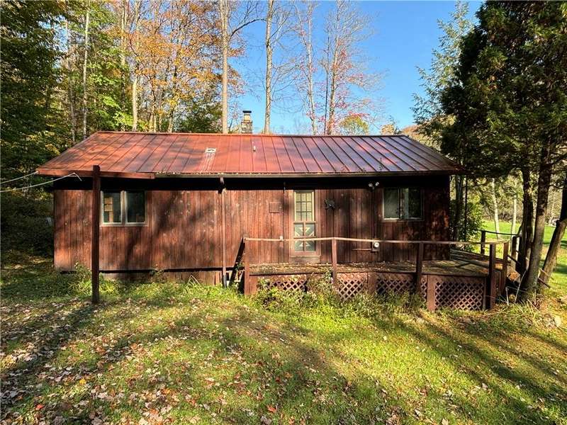 HUNTING CABIN OR WEEKEND RETREAT - Nestled in the Village of Westline, surrounded by the Allegheny National Forest, sits your perfect getaway! This 2-bedroom cabin features a welcoming open floor plan with maple hardwood floors and a cathedral ceiling. The kitchen and dining area are divided by a spacious breakfast bar that seats six and includes a built-in electric cooktop and oven. The cabin is equipped with electric baseboard heating. The full bathroom includes both a tub and shower. Each of the two bedrooms has closets and can comfortably sleep four. The property is serviced by community water and a septic. Roof replaced in 2015 and plumbing has been updated. Outside, there are two storage sheds, and the large lot boasts a small pond and fruit trees. This area offers a host of recreational activities such as hunting, fishing, and hiking, with ATV and snowmobile trails nearby. For water enthusiasts, swimming, boating, and kayaking are a short distance away at the Allegheny Reservoir. Schedule your appointment today!