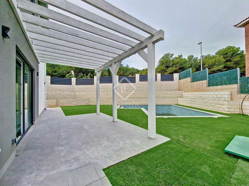 Lucas Fox presents this 236 m² villa built on a 520 m² plot , in a quiet residential area of Cunit, close to all amenities. Crossing a green area, we find the main entrance with a reinforced door, from where we access the main floor through a bright entrance hall that welcomes us. Next we find the direct entrance to the large garage with capacity for several cars and a tool and storage area, which has an exterior window and automatic door. On the ground floor, there is a full bathroom with a shower and a bright double bedroom equipped with a built-in wardrobe . Next, we find a large kitchen open to the entire living room space, equipped with all appliances and a central island. The spacious living-dining room has large windows that provide light all day long, as well as access to the garden and the porch, ideal for enjoying the outdoors. On the first floor, going up the stairs, we are greeted by a spacious entrance hall with individual access to a cozy terrace. On this floor there is a full bathroom with a bathtub and an exterior window and three exterior double bedrooms. One of the double bedrooms has access to a spectacular terrace with sea views, while the main bedroom, in addition to having access to the terrace, enjoys an individual full bathroom and a dressing room. Finally, in the garden, we also find an incredible swimming pool and porch area with a pergola. It is a space that offers great privacy to enjoy family moments, with direct access from the entrance and from the living room and kitchen area. The house has air conditioning, an alarm system, a fully equipped kitchen, natural oak parquet floor and double-glazed aluminium windows. The house is built with Sip technology with low energy consumption and has high-quality materials. It is located in an exceptional complex, ideal for enjoying with the family all year round and enjoying the comfort of living in a privileged residential area, with all the amenities at your fingertips. Please contact us for more information or to arrange a viewing.