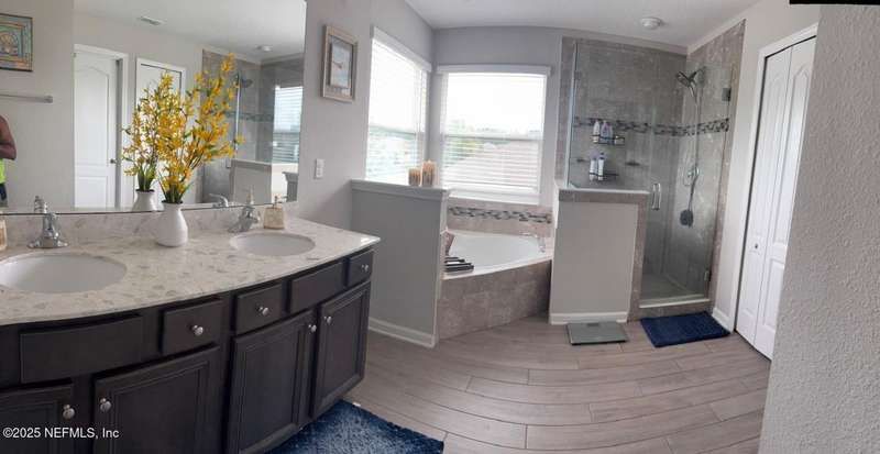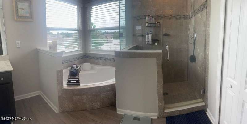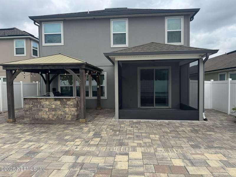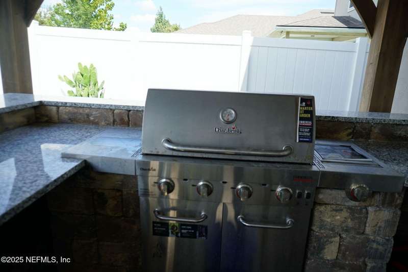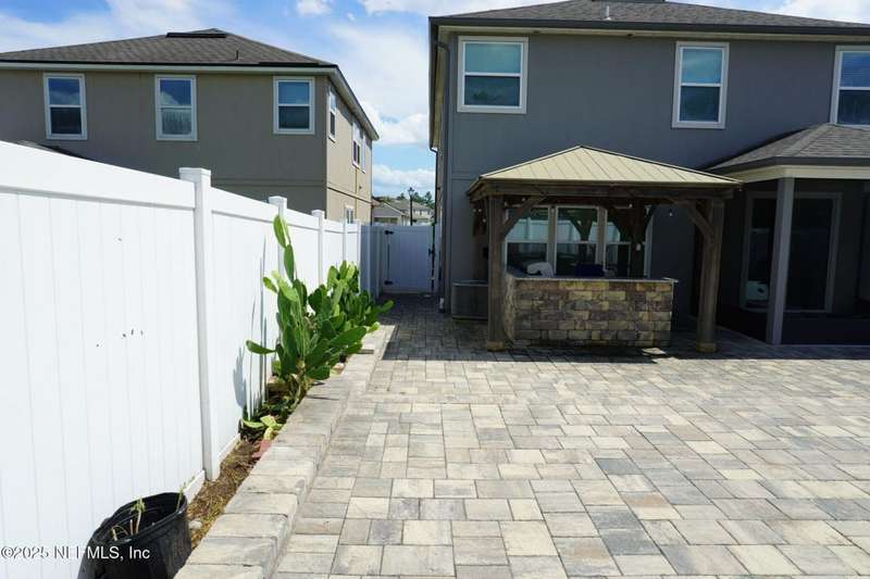 Charming two-story A-Frame patio home featuring a gourmet kitchen with island, breakfast bar, nook, pantry, and full appliance package. Primary suite offers walk-in closet and spa-style bath with tub and separate shower. Enjoy outdoor living with a screened patio, covered porch, gazebo, outdoor kitchen, and fully fenced yard with sprinklers. Community amenities include fitness center, pool, playground, tennis courts, sidewalks, and street lights. Attached garage, smart home features, and energy-efficient windows and insulation complete this move-in ready home. Fox Creek is conveniently located near the newly constructed Florida First Coast Highway, 1-295, 1-10 and 1-95 making it a short drive to all of Jacksonville. Cecil Commerce Center, world class healthcare, downtown Jacksonville, the Town Center and NAS JAX are all just minutes away. With low HOA fees, no CDD Fees and great amenities