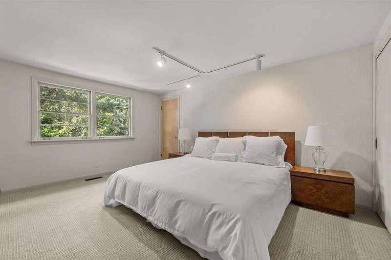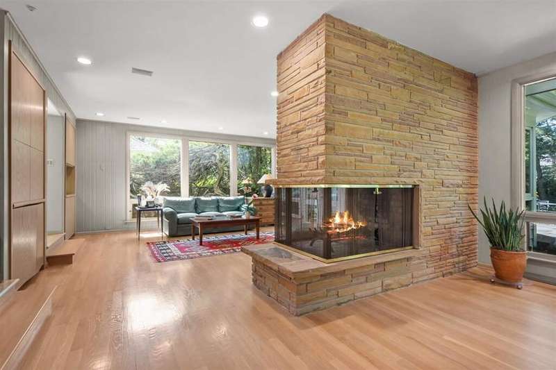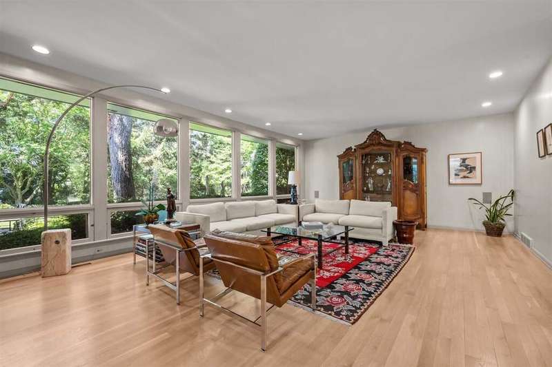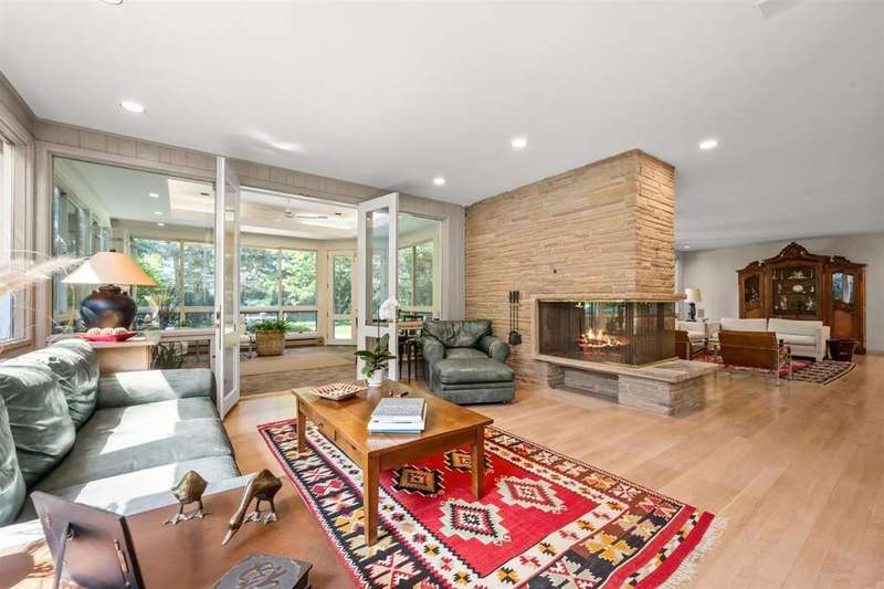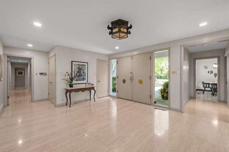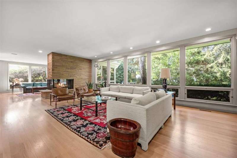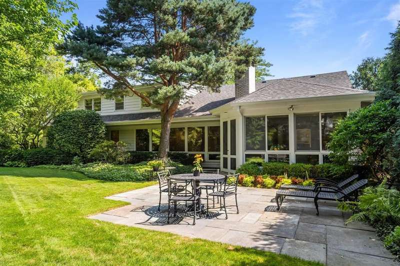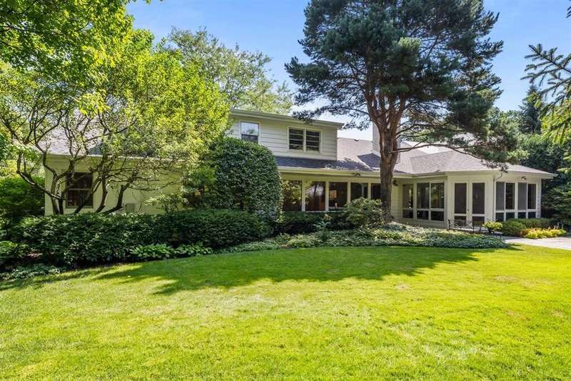 Beautiful east Glencoe mid-century modern, with 1st FLOOR PRIMARY, was designed by renowned architect Henry L. Newhouse II. On nearly 1/2 acre in coveted 'walk-to' location -town, train, beach, schools- this thoughtfully planned and beautifully crafted 5 Br, 3.5 bath 1955 home, lives like a Ranch...and includes two bonus bedrooms upstairs. Combining iconic architecture with minimalist elegance, it boasts an open floor plan, generously sized rooms and a great flow for everyday living and entertaining. Signature Newhouse design elements, including clean lines, natural materials and floor-to-ceiling windows, enhance the indoor-outdoor harmony that defines the mid-century era. A circular driveway, bluestone walk and covered entry lead you home. Impressive travertine foyer creates a captivating first impression and flows seamlessly into the striking living room, accented by full height windows that frame sweeping views of the patio and lushly landscaped backyard, entertainment-size dining room and light-filled family room with custom built-ins. Architectural three-sided stone fireplace defines the living room/family room space. The four-season sunroom is an inviting year-round haven, ideal for family and guests and a great spot to enjoy your morning coffee or your evening glass of wine. It opens to the bluestone patio and sprawling manicured property -- your oasis for outdoor enjoyment. The retro-style kitchen with eating area awaits your personal style and touches. Spacious 1st floor primary suite includes a dressing room with multiple closets and an updated spa bath with radiant-heated floors. Two additional bedrooms, a hall bath and Powder Room complete the main floor. Upstairs, two generously sized bedrooms, with shared hall bath, provide flexible space for family, guests or home office. Finished basement includes rec room/playroom, laundry room and tons of storage. New Roof 2024. Zoned HVAC, underground sprinkler system. With its timeless architecture, flexible living spaces, prime location and substantial lot size, this home offers the perfect blend of style, comfort and space. It is a wonderful opportunity. Welcome home!! Agent owned.