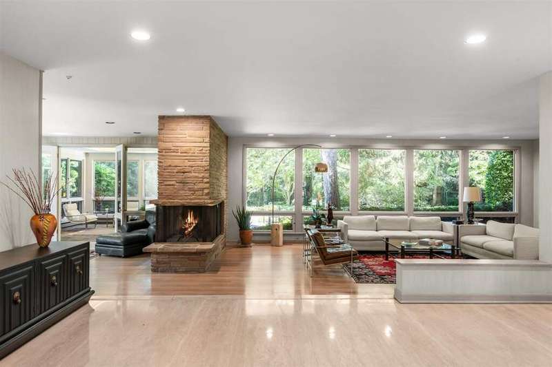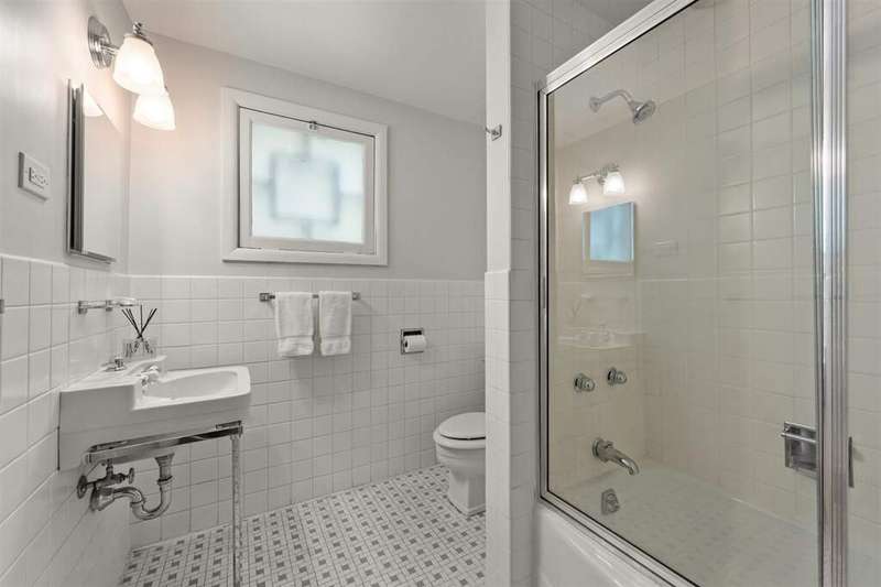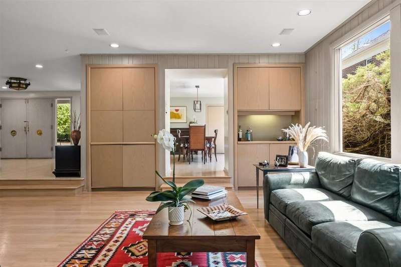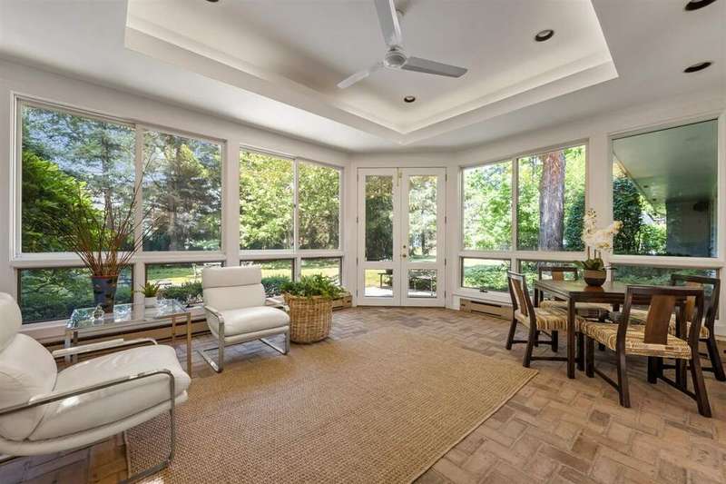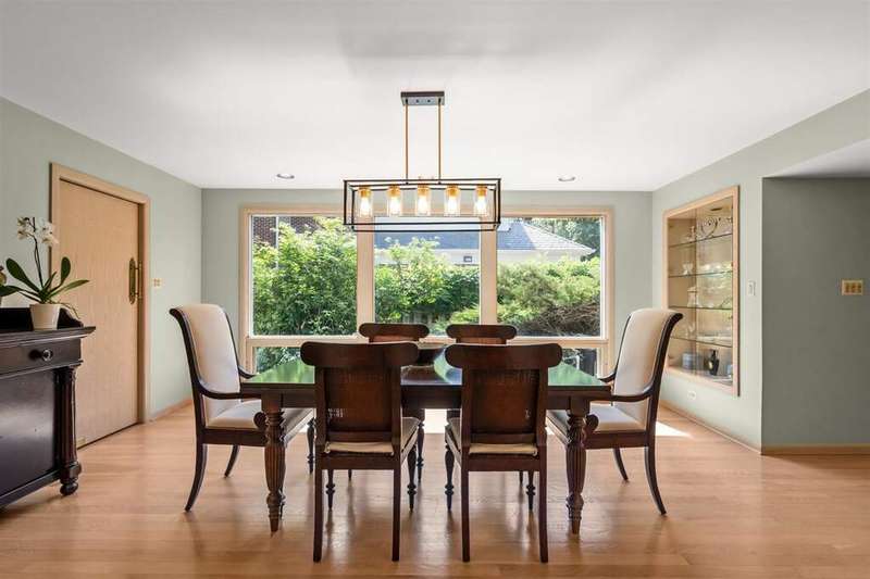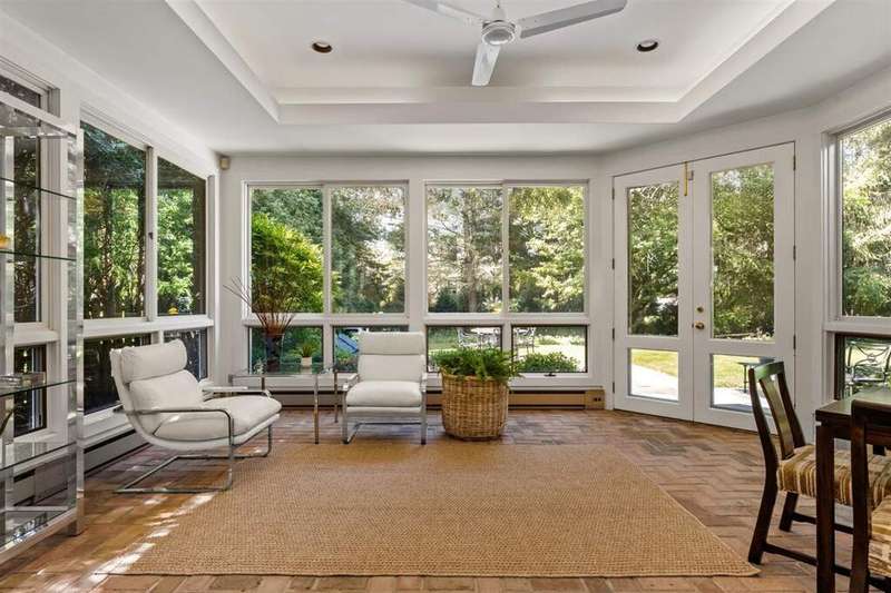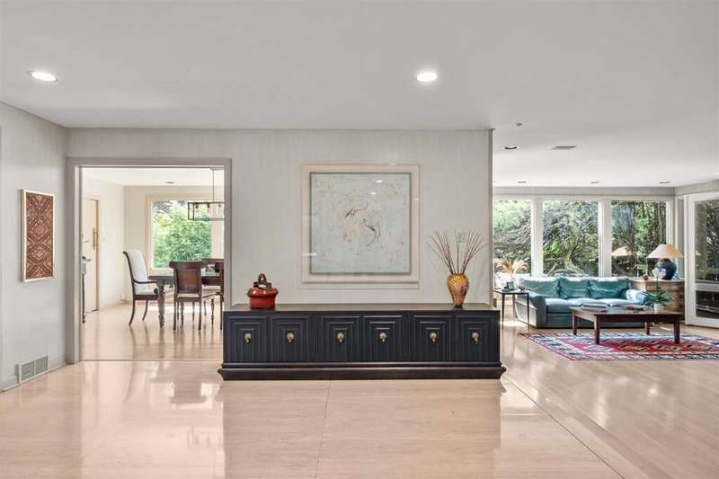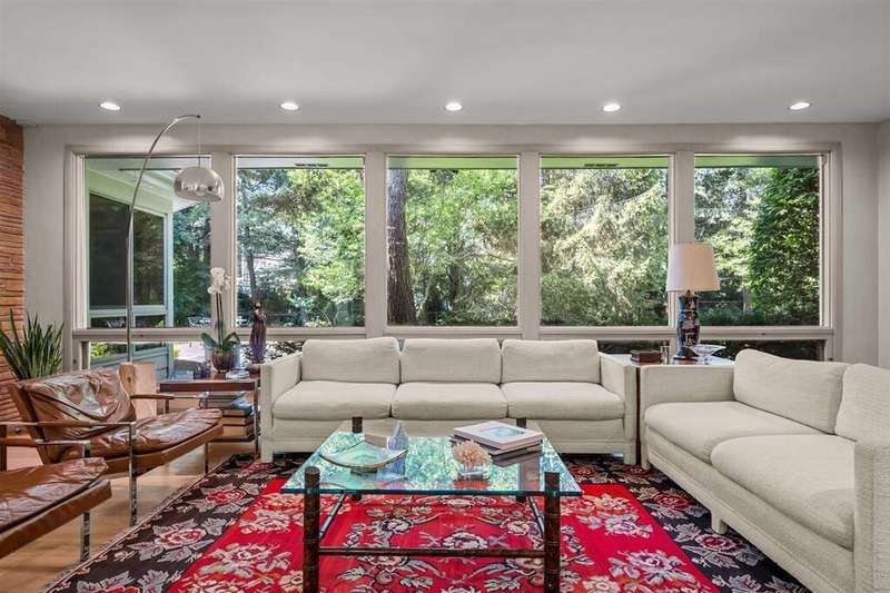 Beautiful east Glencoe mid-century modern, with 1st FLOOR PRIMARY, was designed by renowned architect Henry L. Newhouse II. On nearly 1/2 acre in coveted 'walk-to' location -town, train, beach, schools- this thoughtfully planned and beautifully crafted 5 Br, 3.5 bath 1955 home, lives like a Ranch...and includes two bonus bedrooms upstairs. Combining iconic architecture with minimalist elegance, it boasts an open floor plan, generously sized rooms and a great flow for everyday living and entertaining. Signature Newhouse design elements, including clean lines, natural materials and floor-to-ceiling windows, enhance the indoor-outdoor harmony that defines the mid-century era. A circular driveway, bluestone walk and covered entry lead you home. Impressive travertine foyer creates a captivating first impression and flows seamlessly into the striking living room, accented by full height windows that frame sweeping views of the patio and lushly landscaped backyard, entertainment-size dining room and light-filled family room with custom built-ins. Architectural three-sided stone fireplace defines the living room/family room space. The four-season sunroom is an inviting year-round haven, ideal for family and guests and a great spot to enjoy your morning coffee or your evening glass of wine. It opens to the bluestone patio and sprawling manicured property -- your oasis for outdoor enjoyment. The retro-style kitchen with eating area awaits your personal style and touches. Spacious 1st floor primary suite includes a dressing room with multiple closets and an updated spa bath with radiant-heated floors. Two additional bedrooms, a hall bath and Powder Room complete the main floor. Upstairs, two generously sized bedrooms, with shared hall bath, provide flexible space for family, guests or home office. Finished basement includes rec room/playroom, laundry room and tons of storage. New Roof 2024. Zoned HVAC, underground sprinkler system. With its timeless architecture, flexible living spaces, prime location and substantial lot size, this home offers the perfect blend of style, comfort and space. It is a wonderful opportunity. Welcome home!! Agent owned.