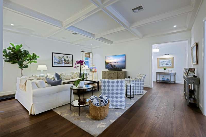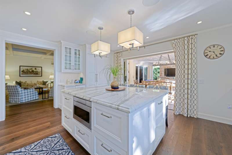 Set on one of the most prestigious streets South of Southern (SoSo), 245 Murray Road is a Spanish Mediterranean estate that has been completely reimagined by the renowned architectural firm Spina O'Rourke. Behind its custom pecky cypress front door, the residence unveils a grand living room with soaring 13-foot vaulted ceilings, dramatic pecky cypress beams, a marble fireplace, tongue-and-groove detailing, and wrought-iron accents that carry through the home. The formal dining room is equally captivating with its pecky cypress ceiling, chandelier, and oak hardwood flooring. Designed for entertaining, the main level offers a theater room, billiards lounge with a custom bar, and a warm family room that flows seamlessly into the chef's kitchen,