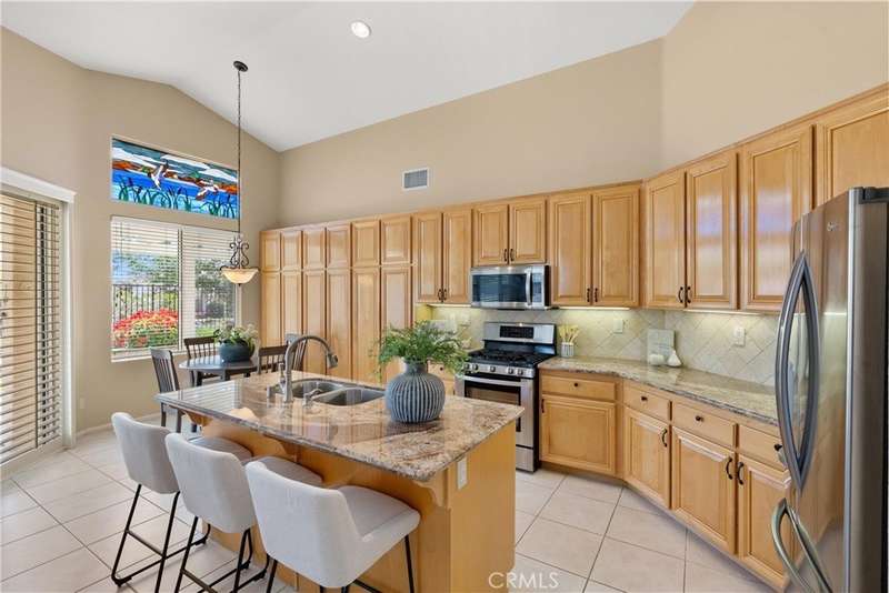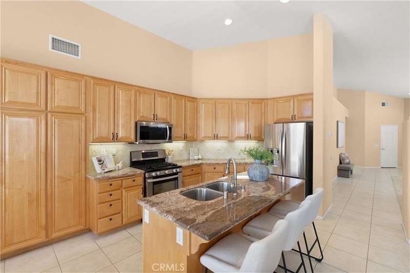 Immaculate SINGLE STORY GEM for Sale in Exclusive 55+ Community, with a private golf course inside the gates! Own a slice of paradise in this pristine 3-bedroom, 2-bathroom home, offering 1,764 square feet of meticulously crafted living space. Nestled in a vibrant 55+ gated community, this stunning residence grants access to a golf course, sparkling pool, and an array of amenities for an unparalleled lifestyle. Step into elegance with quality flooring and custom plantation shutters and blinds enhancing every room’s charm. The GOURMENT KITCHEN is a masterpiece, featuring upgraded granite countertops, premium appliances, a lovely island, and abundant storage for all your culinary needs. The PRIMARY SUITE is a serene retreat, complete with a spacious WALK-IN CLOSET featuring custom built-ins and a SPA-INSPIRED bathroom. Practicality meets luxury with a dedicated laundry/utility room, equipped with a sink and included washer and dryer. The garage offers ample storage, a built-in workbench, a sleek epoxy floor, and a whole-home water softener for ultimate convenience. The HVAC system ensures year-round comfort, with a SOLAR LEASE keeps energy costs low. The beautifully manicured grounds, complemented by a newer patio cover, create an inviting outdoor oasis perfect for relaxation or entertaining. This flawless home, with every upgrade designed for comfort and sophistication, is your chance to own a resort-style haven. Don’t miss out—scale up to this extraordinary property and make it yours today! Schedule a viewing now!