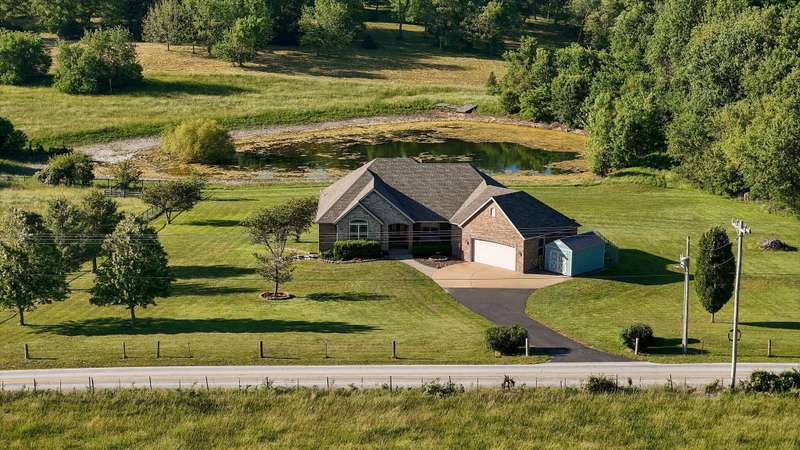 Discover your dream home in this stunning custom-built residence featuring 4 spacious bedrooms and 3 full bathrooms and 2 half bathrooms. Ideal for family and guests, this property includes an additional upstairs bedroom that includes a private full bathroom and a dedicated office space. The large kitchen with double wall ovens is perfect for culinary enthusiasts, while two generous sized living spaces offer plenty of room for relaxation and entertainment.Situated less than 10 minutes from Republic High School and Republic community pool and parks, this home is perfectly located for convenience and gives a country feel while being minutes from necessities. Enjoy the beauty of nature with rolling hills and a stocked pond ideal for fishing. This expansive land could be kept as one magnificent estate or divided for future opportunities. Having been lovingly maintained by its original owner, this home is a rare find! Don't miss out on this picturesque property that combines luxury and practicality!