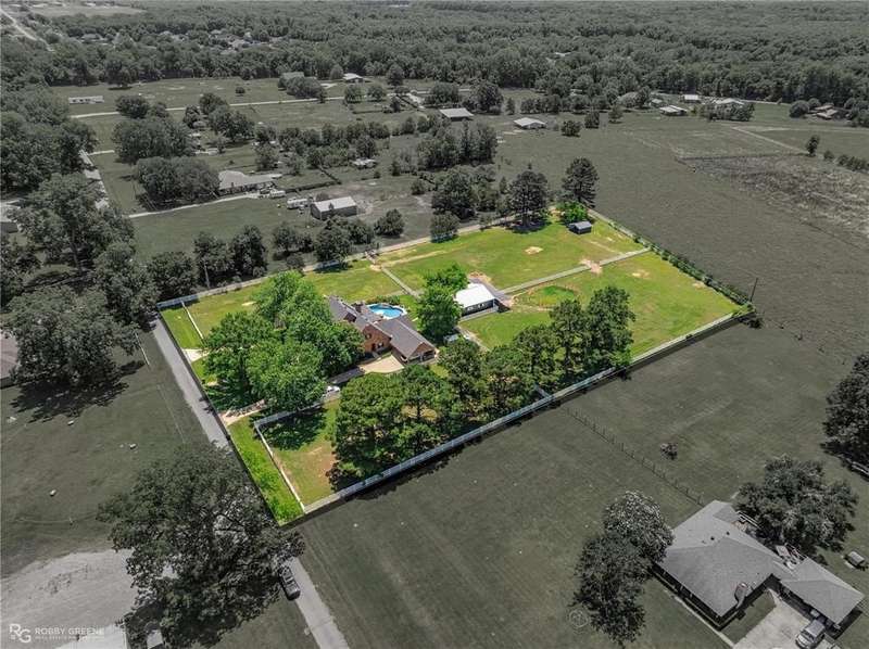 Nestled on 3.1 picturesque acres in the heart of North Bossier, this stunning 5-bedroom, 4.5-bath estate blends timeless southern elegance with resort-style amenities. A circular drive framed by mature oaks welcomes you to a home that exudes curb appeal and classic charm. Inside, over 4,450 square feet of refined living space unfolds, warm hardwood floors, exposed brick accents, and soaring ceilings create a perfect harmony of comfort and sophistication. The gourmet kitchen is a showpiece with custom cabinetry, granite counters, statement lighting, and an inviting open flow into the dining and living areas. A towering brick fireplace anchors the great room, complemented by dramatic double-height windows and rich blue tones that make every detail pop. Each room is generously sized and the home office offers convenient ability to work from home Movie nights reach cinematic perfection in your private theater room, complete with tiered red recliners and surround sound. The spacious primary suite offers a serene retreat with spa-like bath amenities, while additional bedrooms ensure ample space for family and guests. Step outside to a backyard oasis that will leave you breathless, a sparkling in-ground pool, outdoor kitchen and bar beneath a cedar pergola, and lush, manicured landscaping that feels like a resort getaway. Follow the brick pathway to the horse stables and fenced pastures, perfectly suited for equestrian enthusiasts or anyone dreaming of wide-open space. There’s even a large stable and barn, ideal for hobbies, livestock, or storage. The covered carport, expansive patios, and tranquil country views complete the picture an entertainer’s dream and a family’s forever home all in one. All this just minutes from I-220, shopping, and award-winning schools, yet worlds away from the everyday. Don't miss your chance to call 1171 Wemple Road home, where elegance meets country living, and every day feels like a retreat. Call today for your private showing!