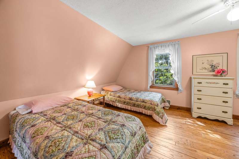 Oceanside Eastham neighborhood with newly paved, private road offers proximity to the National Seashore and Eastham's renowned ocean side beaches, bike paths and hiking trials. Constructed, owned and enjoyed by one family, this Gambrel style home still has many of it's original features. The long great room has Cape Cod plank pine beadboard wainscot & paneling and beamed ceiling, a central wood burning fireplace with rustic mantle, bunged hard wood floors and built in cabinets and shelving. This open living/dining area is flanked by the kitchen, full bath with stall shower and convenient first level paneled bedroom space. The 2nd level offers 2 more good sized bedrooms with hardwood floors and a spacious full bath with large skylight. Outside a composite deck leads to the level and cleared back yard and outdoor shower. This lovely lower Cape home invites the next family of beach goers to come shape this Sand Castle to their own design. Some recent improvements include: NEW SEPTIC SYSTE