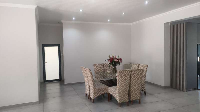 This newly built, secure home features four bedrooms, each with an en-suite bathroom, providing ultimate privacy and comfort. The open-plan kitchen, lounge, and dining area offer a contemporary and inviting space for gatherings. A flatlet adds versatility, ideal for guests or additional living space. The property includes a reliable borehole for consistent water supply and boasts a spacious garden perfect for outdoor activities and relaxation. With modern security measures in place, your peace of mind is assured. For more information or to arrange a viewing, please contact us.