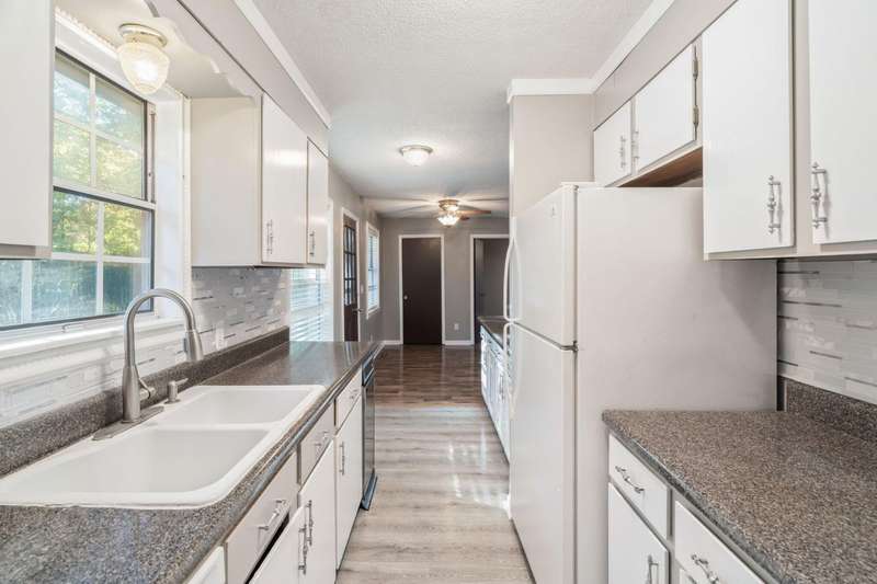This charming, freshly updated 3/2 basement ranch has tons of updates. Fresh paint and flooring throughout. HVAC less than 5 years old. New roof and septic clean out in 2023. Brand new dishwasher, garage door, and garage door opener. Relax on either your covered front porch or back patio. Downstairs could be a separate living space, as it is plumbed for a bath and boasts its own driveway, garage, and entrance.