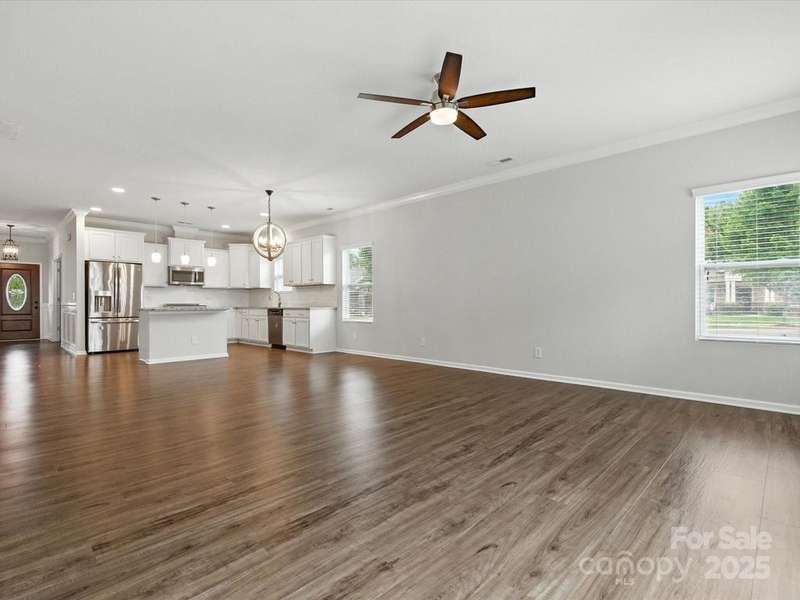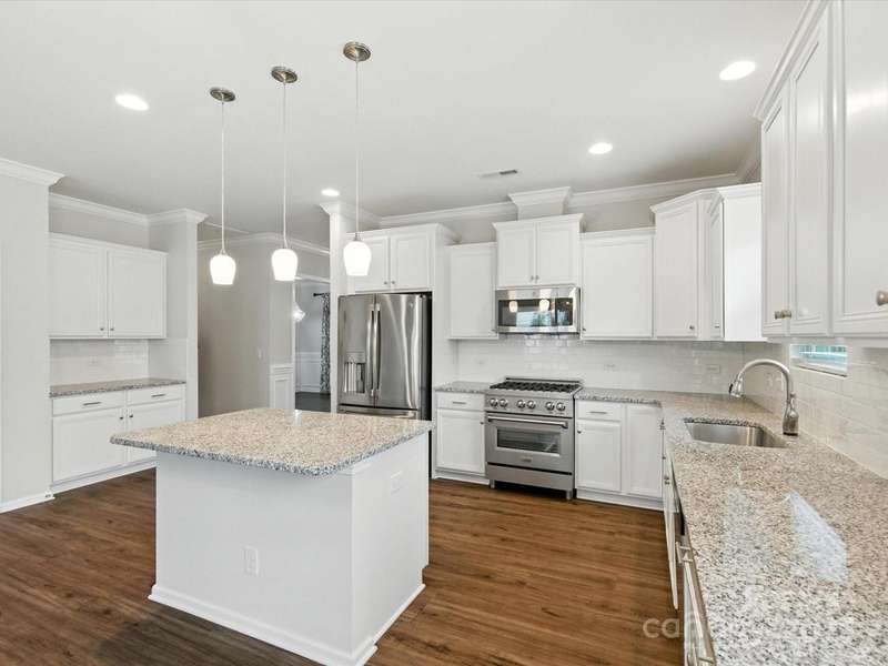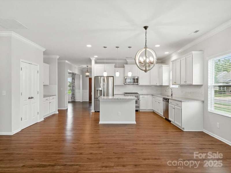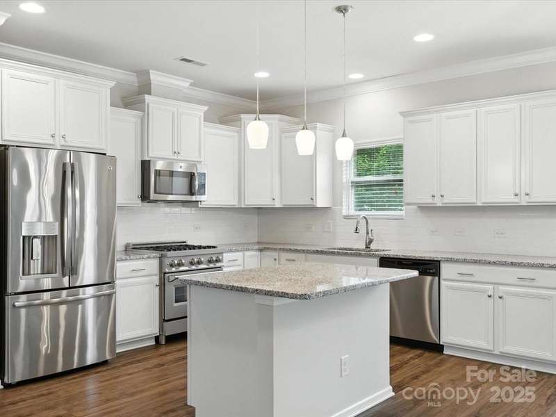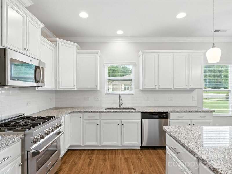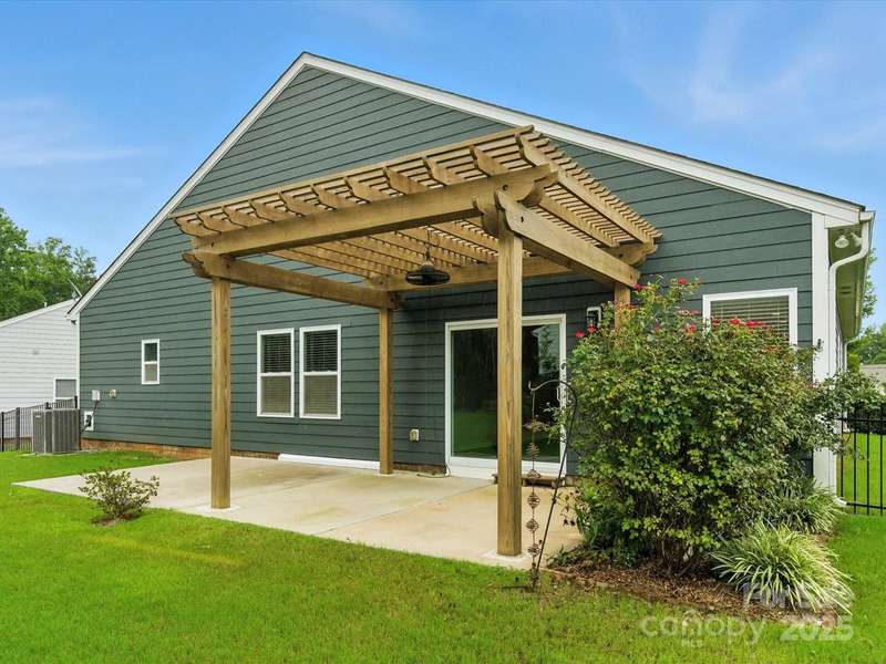 Look no further!! Gorgeous 3BR, 2BA + office home! Move-in ready and located on a superb corner lot that is just across from an open green area w/ sidewalks & benches! Loads of curb appeal & charming front porch! Inviting layout offers a formal dining room & office/living room w/French doors just as you enter this lovely home. As you walk toward the rear of the home you will find a beautiful kitchen w/an eat-in island, breakfast area & great room that overlooks the back yard & rear patio. The kitchen also features stainless appliances, tile backsplash, granite counters, white cabinetry w/pull out shelving & a coffee bar! This home offers a split bedroom plan which is ideal for privacy! Spacious primary bedroom includes a walk-in closet, an en-suite bathroom featuring a dual vanity & large walk-in shower! Separate laundry room. Relax after a long day on your back porch/patio area which features a pergola, just waiting for your artistic touch! Light & bright inside w/a fresh coat of paint & great natural light!