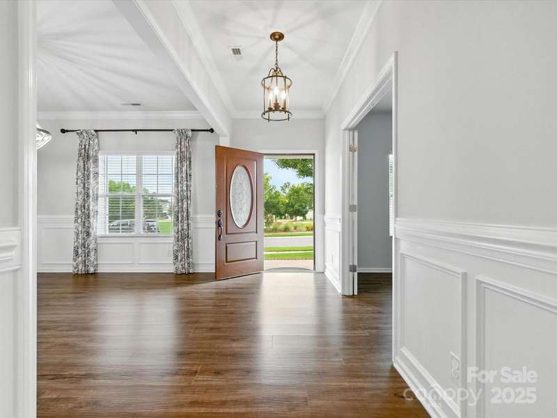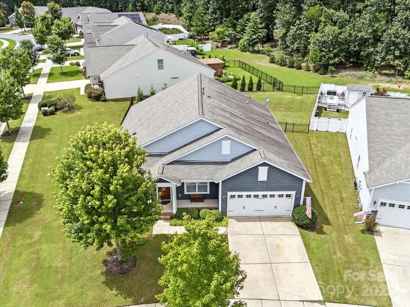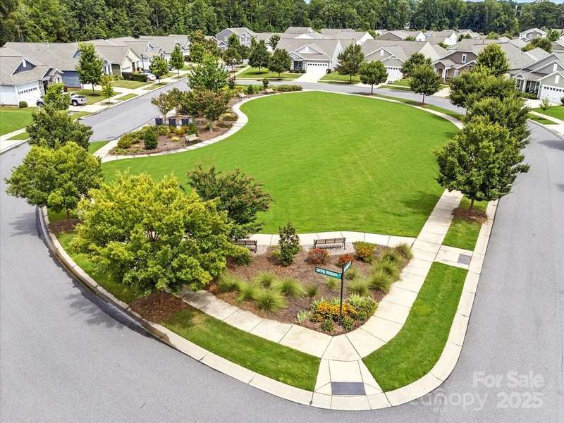 Look no further!! Gorgeous move-in ready home on a superb corner lot that is located across from an open green area w/ sidewalks & benches! Loads of curb appeal & charming front porch! Inviting layout offers a formal dining room & office/living room w/French doors just as you enter this lovely home. As you walk toward the rear of the home you will find a beautiful kitchen w/an eat-in island, breakfast area & great room that overlooks the back yard & rear patio. The kitchen also features stainless appliances, tile backsplash, granite counters, white cabinetry w/pull out shelving & a coffee bar! This home offers a split bedroom plan which is ideal for privacy! Spacious primary bedroom includes a walk-in closet, an en-suite bathroom featuring a dual vanity & large walk-in shower! Separate laundry room. Relax after a long day on your back porch/patio area which features a pergola, just waiting for your artistic touch! Light & bright inside w/a fresh coat of paint & great natural light!