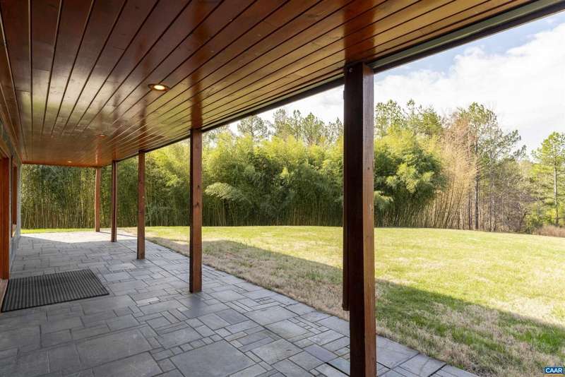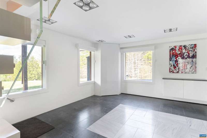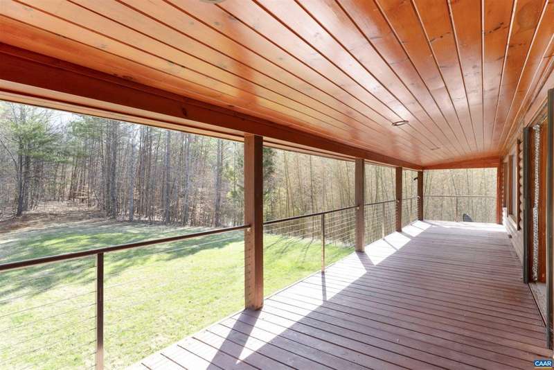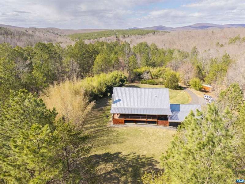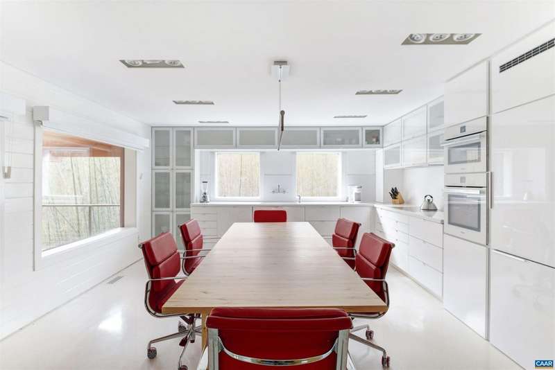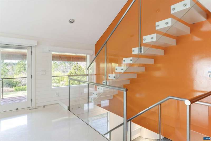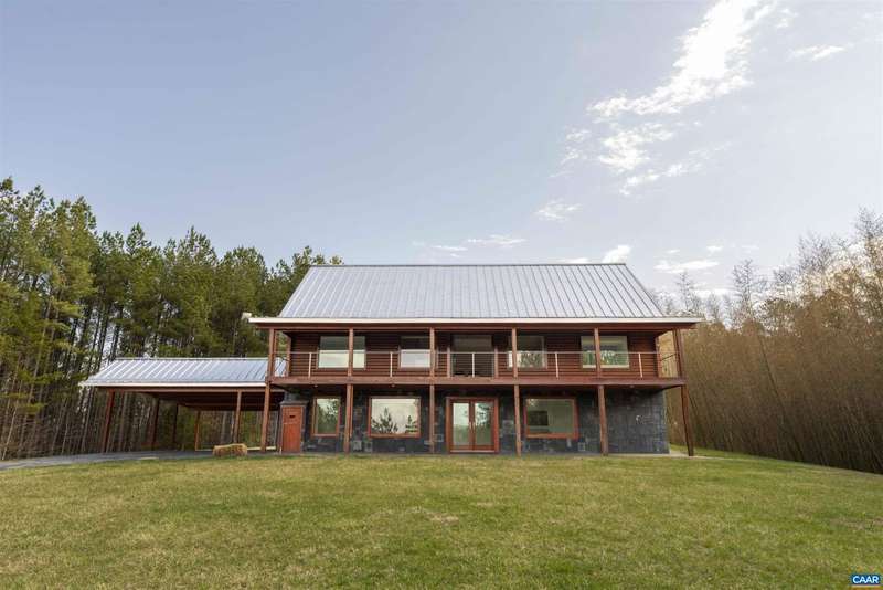 Privately set on 5.5 acres in northern Nelson Co., the rustic log and soapstone exterior belies a visually stunning sleek and sophisticated modern interior full of unusual and high-quality features, systems, and finishes. 3 bedrooms and over 4000sf of finished living. Oversized windows let natural light pour into the space. Highly durable Terrazo and soapstone flooring, built in custom cabinetry everywhere you turn, high-tech lighting and electrical, geothermal HVAC, standing seam steel roof, retractable blinds and porch screens, security and sprinkler system, whole house generator, level 2 EV charger, whole house lightning protection, advanced regenerative water filtration, soundproofed fridge, and much more. Front and rear porches allow for expansive views of local mountains and forests. Paved drive, gated entrance, cisterns for water storage, shed with electric, extreme privacy, and 200ft of creek frontage. The essence of a retreat, with no sacrifices for modern amenities or connectivity. High-speed Starlink internet. You could not come close to replicating this property for this price.,Solid Surface Counter