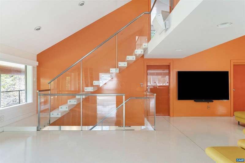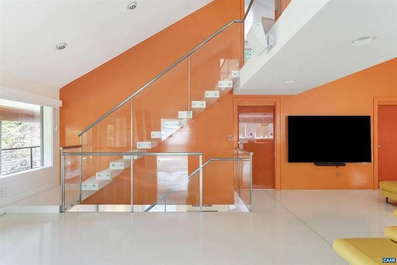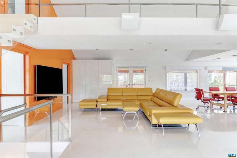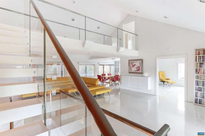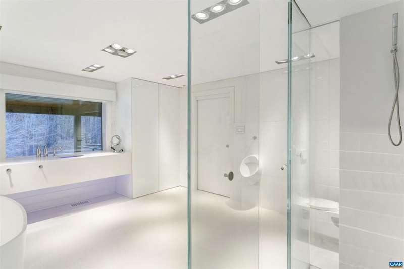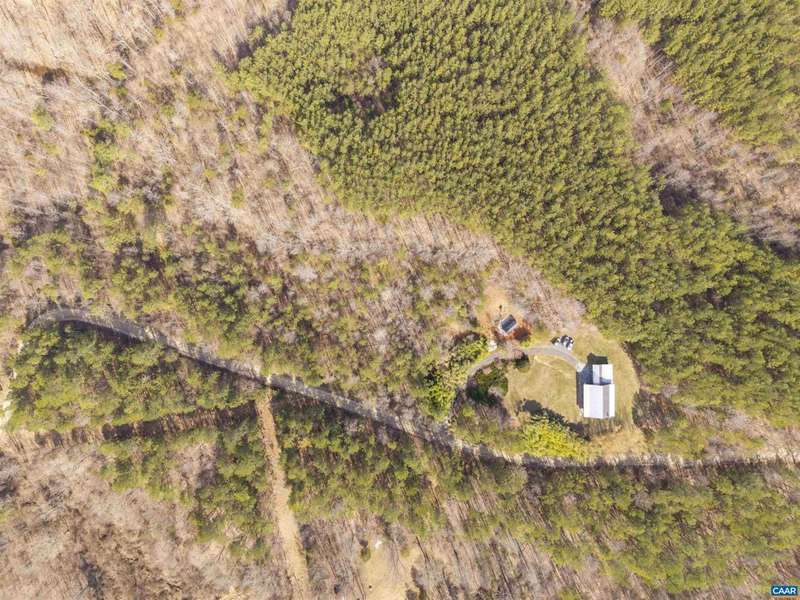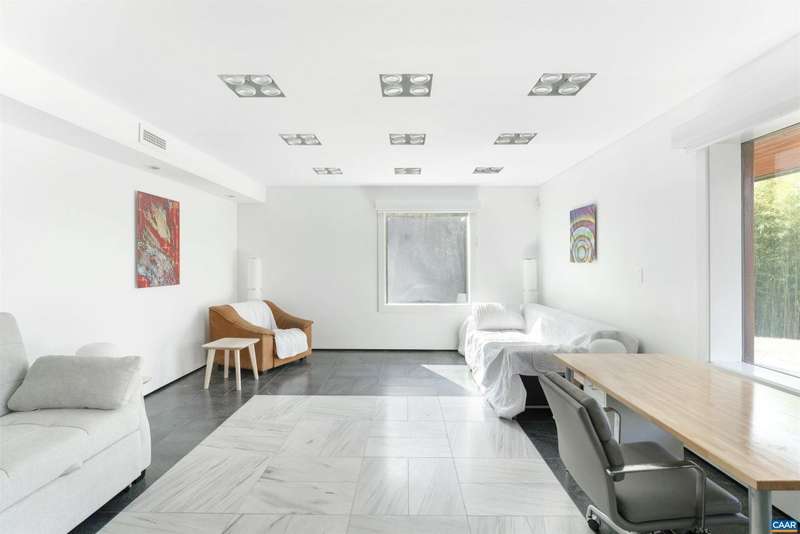 Privately set on 5.5 acres in northern Nelson Co., the rustic log and soapstone exterior belies a visually stunning sleek and sophisticated modern interior full of unusual and high-quality features, systems, and finishes. 3 bedrooms and over 4000sf of finished living. Oversized windows let natural light pour into the space. Highly durable Terrazo and soapstone flooring, built in custom cabinetry everywhere you turn, high-tech lighting and electrical, geothermal HVAC, standing seam steel roof, retractable blinds and porch screens, security and sprinkler system, whole house generator, level 2 EV charger, whole house lightning protection, advanced regenerative water filtration, soundproofed fridge, and much more. Front and rear porches allow for expansive views of local mountains and forests. Paved drive, gated entrance, cisterns for water storage, shed with electric, extreme privacy, and 200ft of creek frontage. The essence of a retreat, with no sacrifices for modern amenities or connectivity. High-speed Starlink internet. You could not come close to replicating this property for this price.,Solid Surface Counter