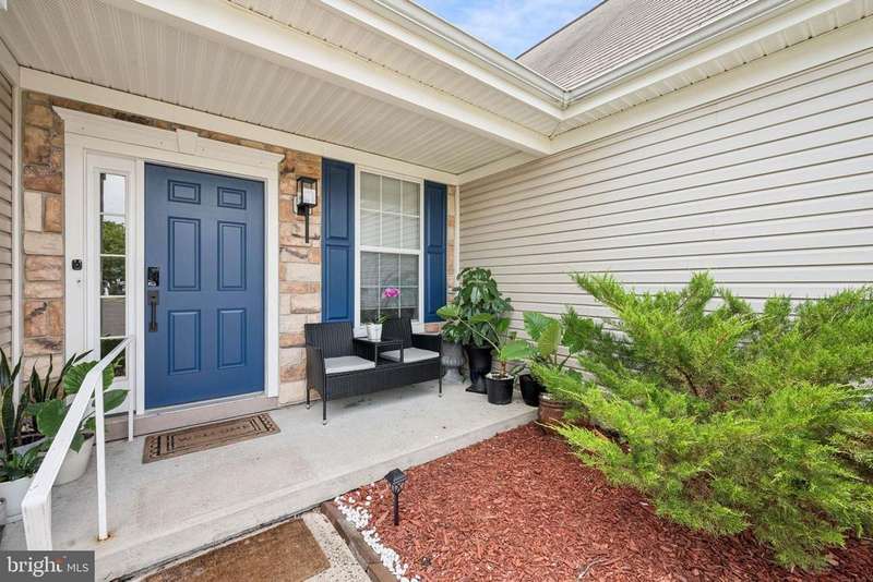 Welcome Home! Nestled on a quiet cul-de-sac and backing to open space for added privacy, this beautifully maintained 2-bedroom, 2-bath ranch-style home offers a perfect blend of comfort, functionality, and style. Step into a spacious foyer that leads to a versatile bonus roomideal as a home office, study, extra sitting area, or even a third bedroom. The open-concept layout continues into a bright dining area and a gourmet kitchen featuring 42 cabinetry, gas cooking, built-in microwave, pantry closet, convenient desk nook, and a new stainless steel refrigerator. Tall windows throughout the home invite an abundance of natural light, creating a warm and welcoming atmosphere in every room. The generous living room boasts a vaulted ceiling and overlooks the private backyardperfect for both relaxing and entertaining. The primary suite is a true retreat, showcasing a custom walk-in closet with sleek, tailored designperfectly curated to accommodate every wardrobe and accessory with style and ease. The en-suite bath features dual vanities, a stall shower, and a large linen closet. A second bedroom sits adjacent to the full hall bath, providing a comfortable and private space for guests. Additional highlights include a dedicated laundry room, a converted 2-car garage currently used as a functional work area, pull-down attic stairs for extra storage, hardwood and laminate flooring, crown molding, wainscoting, and a newer water heater. Enjoy the vibrant lifestyle offered by this active communitycomplete with a clubhouse, outdoor pool, tennis, pickle ball courts, kitchen, library, gym and a calendar full of planned activities. Conveniently located near major highways, shopping, Philadelphia, and the Jersey Shorethis home truly has it all! Schedule your private tour today!
