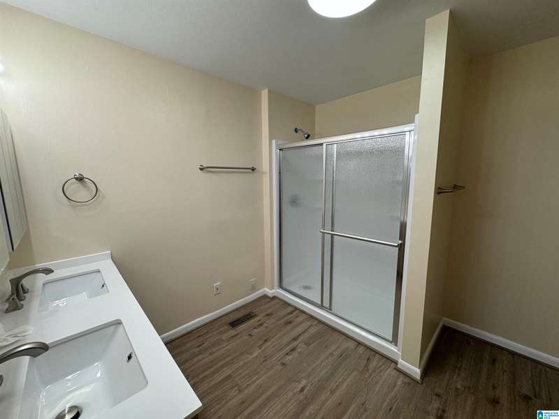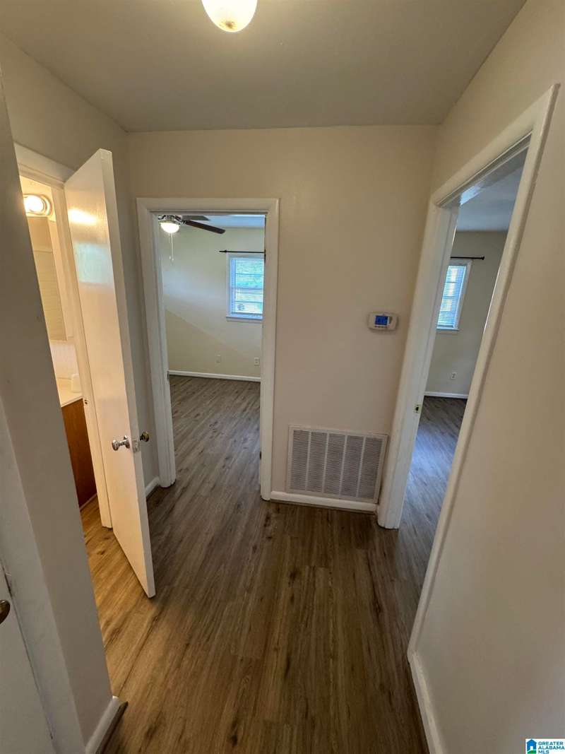 Great house for a family that needs 4 bedrooms and a den in addition to living room/dining room combo. 2 bedrooms on opposite end of house. Just painted inside and outside. New laminate hardwood (original hardwood underneath, no carpet), new ceiling fans, new laminate counter tops and backsplash in kitchen and new dishwasher. Large deck on a shaded flat lot with fenced backyard and storage shed. New master bath with double vanities, large walk-in shower, storage and closet. Located close to all amenities (schools, library, churches, shopping, and restaurants). The house is AS IS!!!