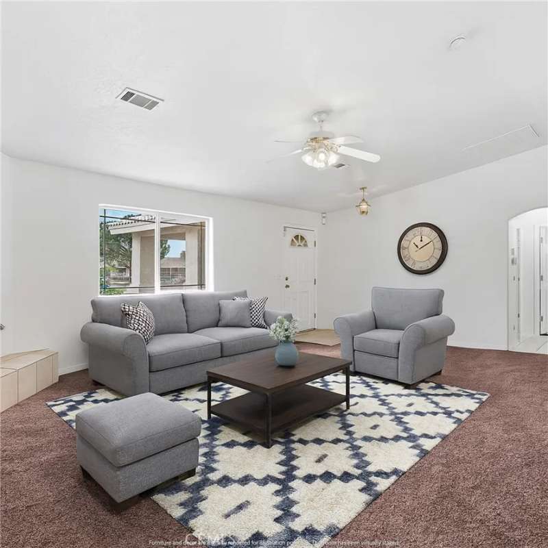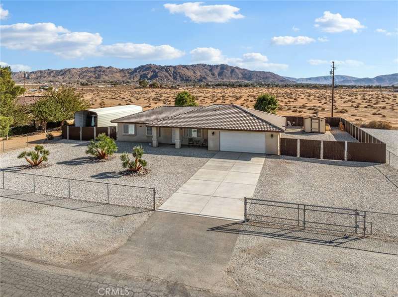 Fabulous & Freshly updated and move-in ready! This Apple Valley home features brand new carpet and paint throughout, creating a bright and inviting interior. Enjoy the fully enclosed patio for extra living space and year-round use. The property is completely fenced and landscaped with low-maintenance rock scape plus mature fruit trees. A large 4-car detached garage in the rear yard offers plenty of parking, storage, or workshop potential. Conveniently located near schools, shopping, and services, this home is ready for its new owner.