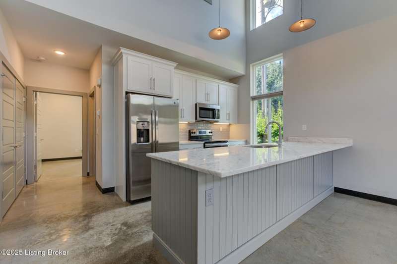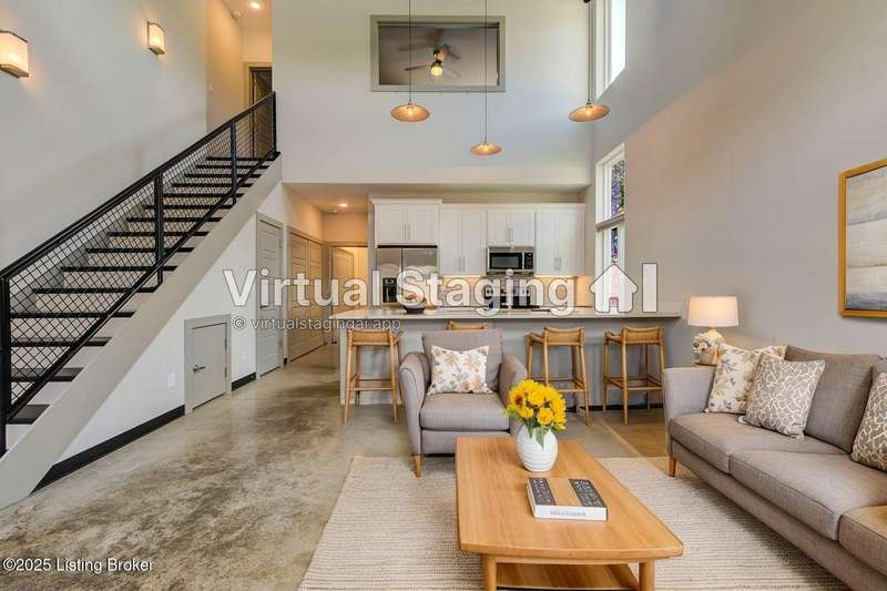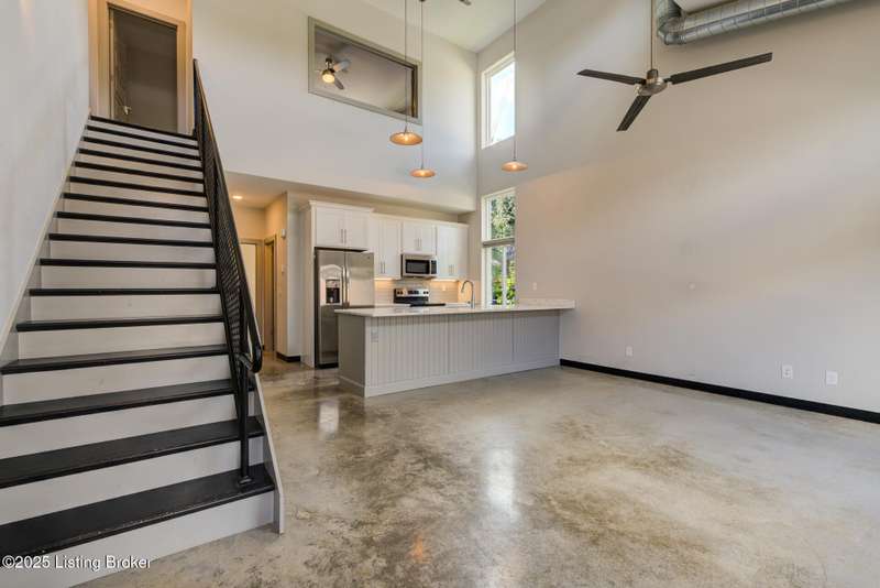 Welcome to the Boutique Community of Lyndon Lofts! This sophisticated loft style townhouse with high ceilings, polished concrete floors, abundance of windows, end unit extra windows, letting in tons of natural light to showcase this BEAUTIFUL, MODERN, space. Two primary ensuites: one on the first floor & one on the 2nd. The kitchen is open to the living space & spacious kitchen island, shaker style cabinetry, Quartz counters, stainless appliances & tiled backsplash. The 1st floor bedroom has double sink vanity & walk-in shower. The 2nd floor suite features upgraded engineered wood floors & bath with tub/shower combo. Drop down stairs to access additional storage in the attic. The outdoor patio space with modern privacy fence & 2 car garage. Pets welcome! This one of a kind home is situated in the perfect location within 2 minutes of I-264, & close proximity to all the amenities at Westport Village. Upgraded with a duel zone HVAC. Rentals of six moths or more allowed.