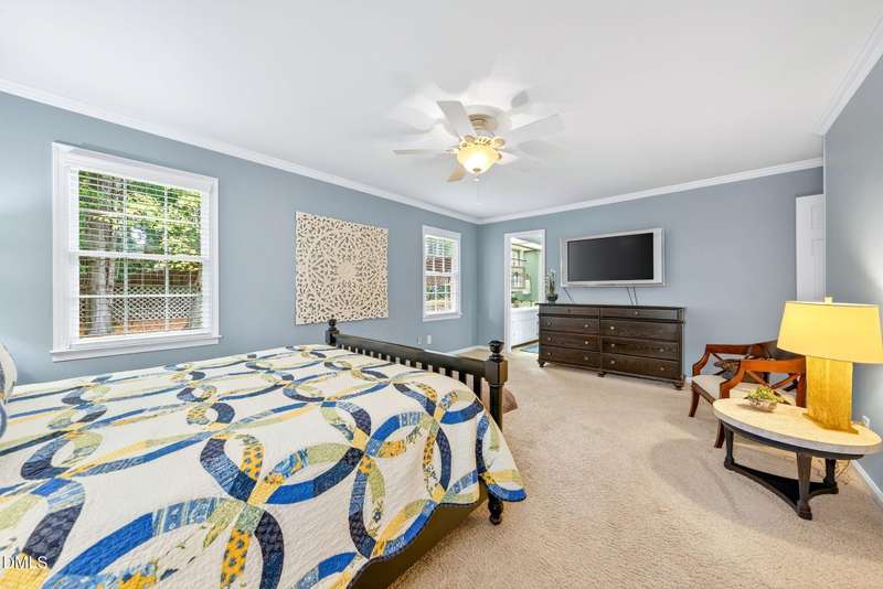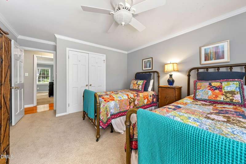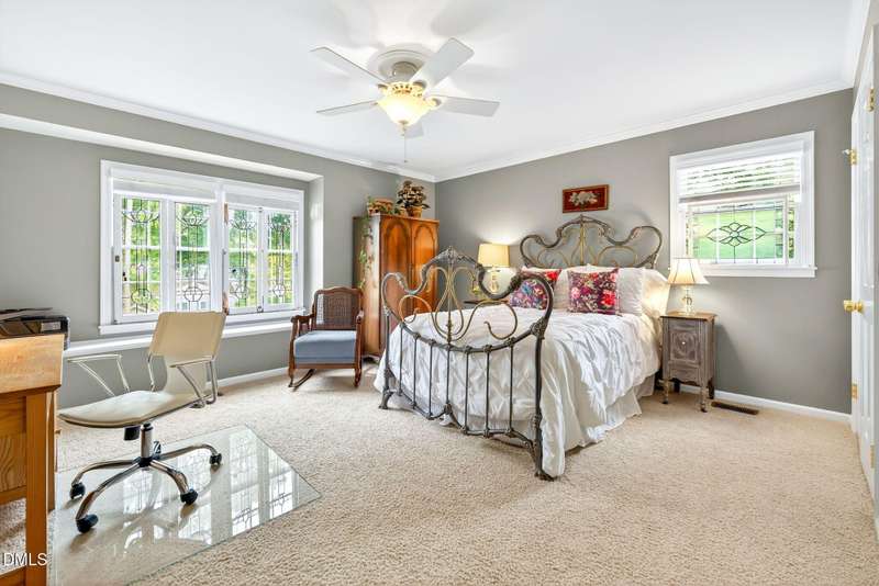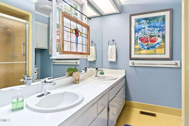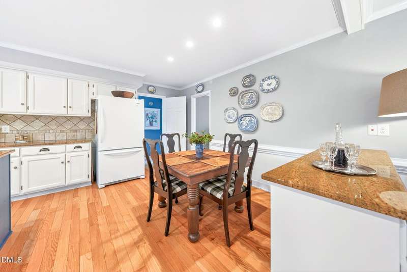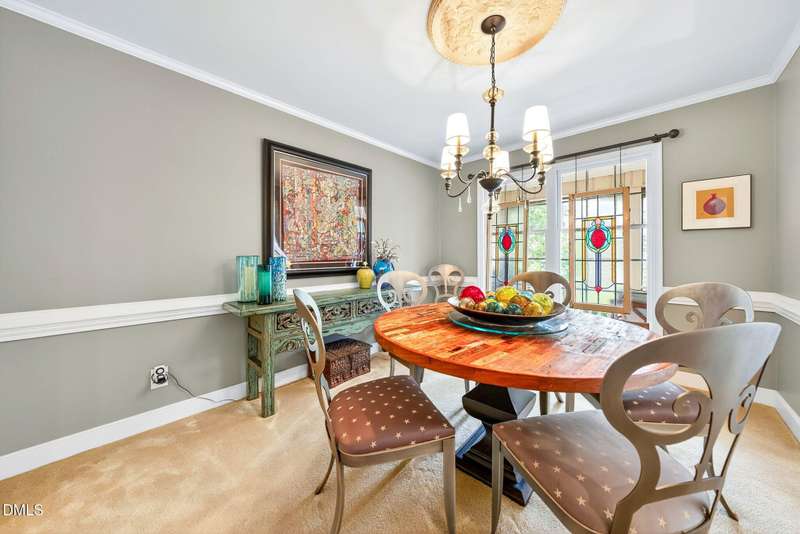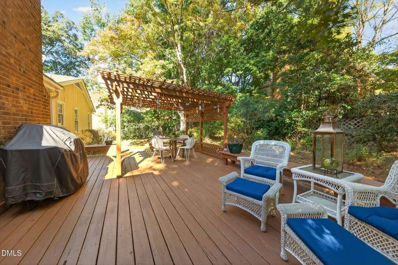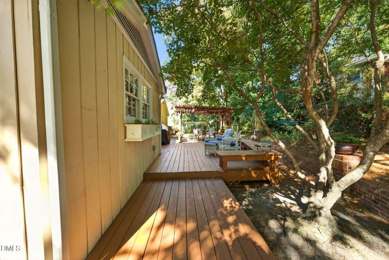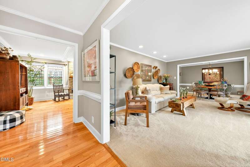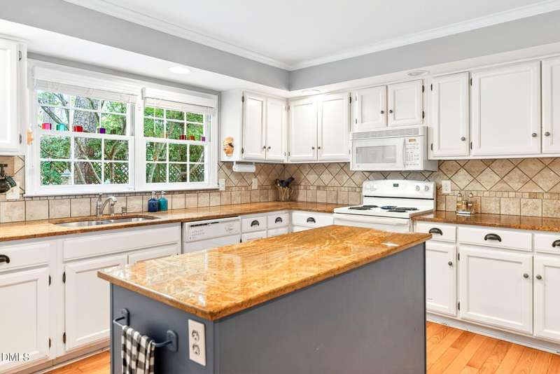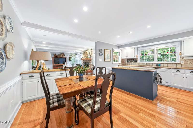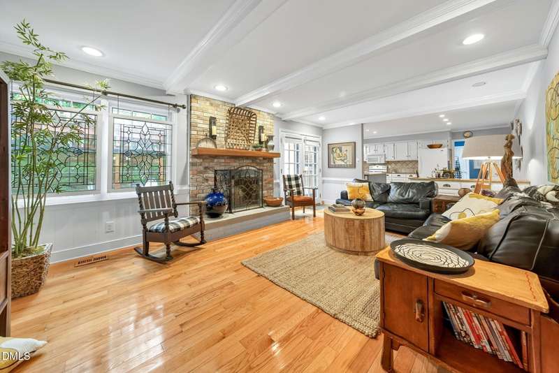 Welcome to this beautifully maintained and thoughtfully designed 3 Bedroom / 2 Bathroom Ranch-style Home, located in one of the most sought-after neighborhoods in the North Ridge / Haymarket area. This charming residence sits on a large, picturesque corner lot, surrounded by mature trees that provide both beauty and privacy, offering the perfect balance between classic elegance and everyday comfort. Step inside to discover a home filled with warmth, character, and tasteful designer accents throughout. With a spacious and flowing layout, this home is ideal for both relaxing day-to-day living and stylish entertaining. The formal living and dining rooms feature abundant natural light and are perfect for hosting guests or enjoying quiet evenings at home. The heart of the home is the oversized kitchen, which offers ample cabinet space, Granite countertops, and a bright breakfast area; a wonderful spot for morning coffee or casual meals. The kitchen seamlessly opens to a welcoming family room with a cozy masonry fireplace, creating a central gathering space for family and friends during holidays, weekends, or special occasions. The first-floor primary suite is a true retreat, complete with a private en-suite bathroom and generous closet space. Two additional well-sized bedrooms and a second full bath are also located on the main floor, making this home perfect for families, guests, or even a home office setup. Additional interior features include: A separate laundry/mudroom area conveniently located off the kitchen, providing easy access to both the garage and backyard. Abundant closet and storage space throughout, large windows that bring in plenty of natural light Once outside, enjoy the beautifully landscaped yard and expansive deck, perfect for outdoor dining, barbecues, or simply relaxing with a good book. The side-load two-car garage includes built-in shelving and extra storage space, ideal for tools, bikes, or seasonal items and has a new Garage Door. Located just minutes from Raleigh's top-rated schools, shopping centers, local restaurants, and entertainment options, this home also offers easy access to I-540, making your commute and travel around the Triangle area a breeze. Whether you're a first-time buyer, downsizing, or looking for a forever home, this property checks all the boxes! Don't miss the opportunity to own this delightful home in one of the Triangle's most beloved neighborhoods. Schedule your private showing today!
